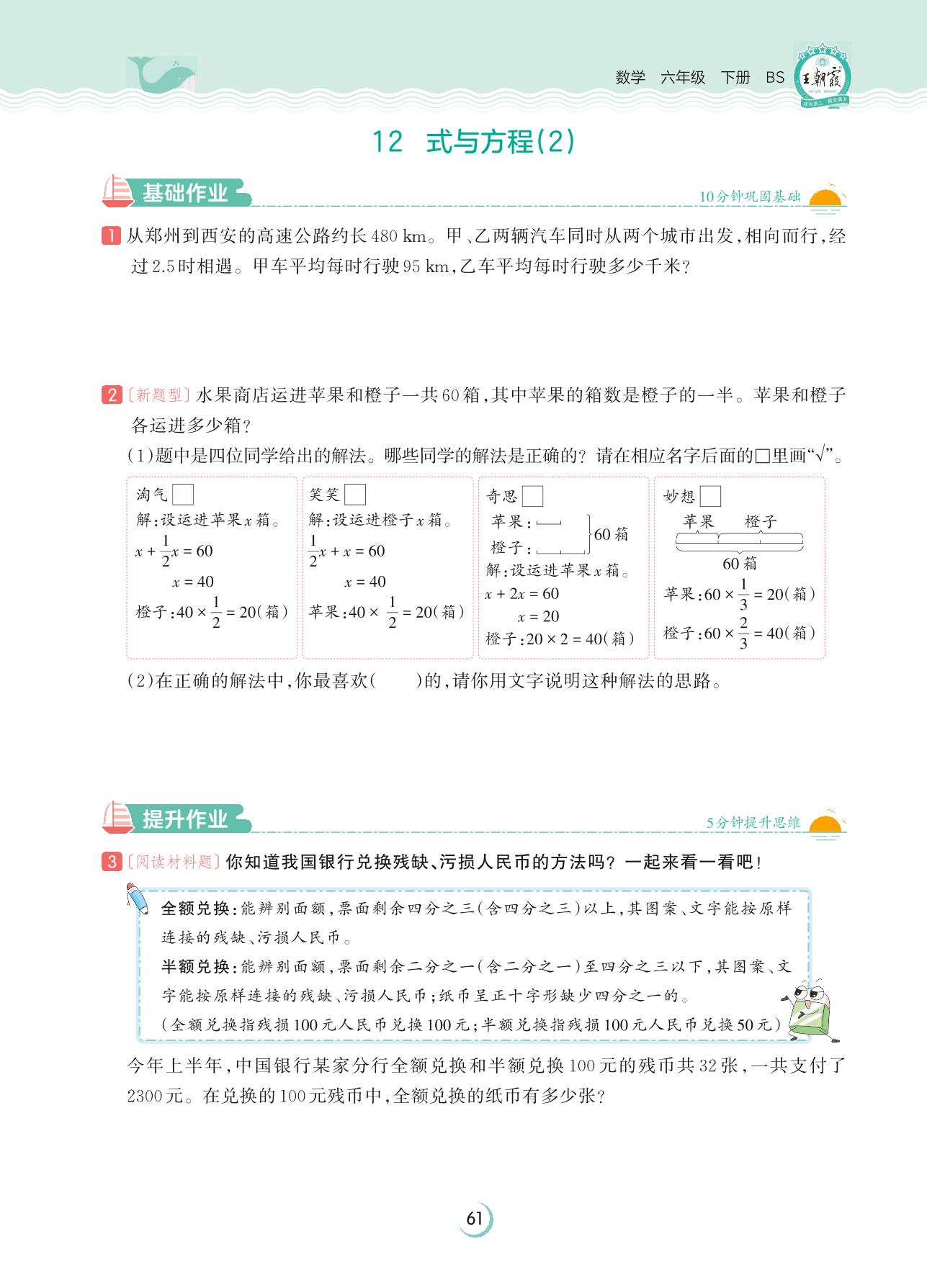 2023下册六年级数学北师版 总复习 数与代数——12 式与方程(2)