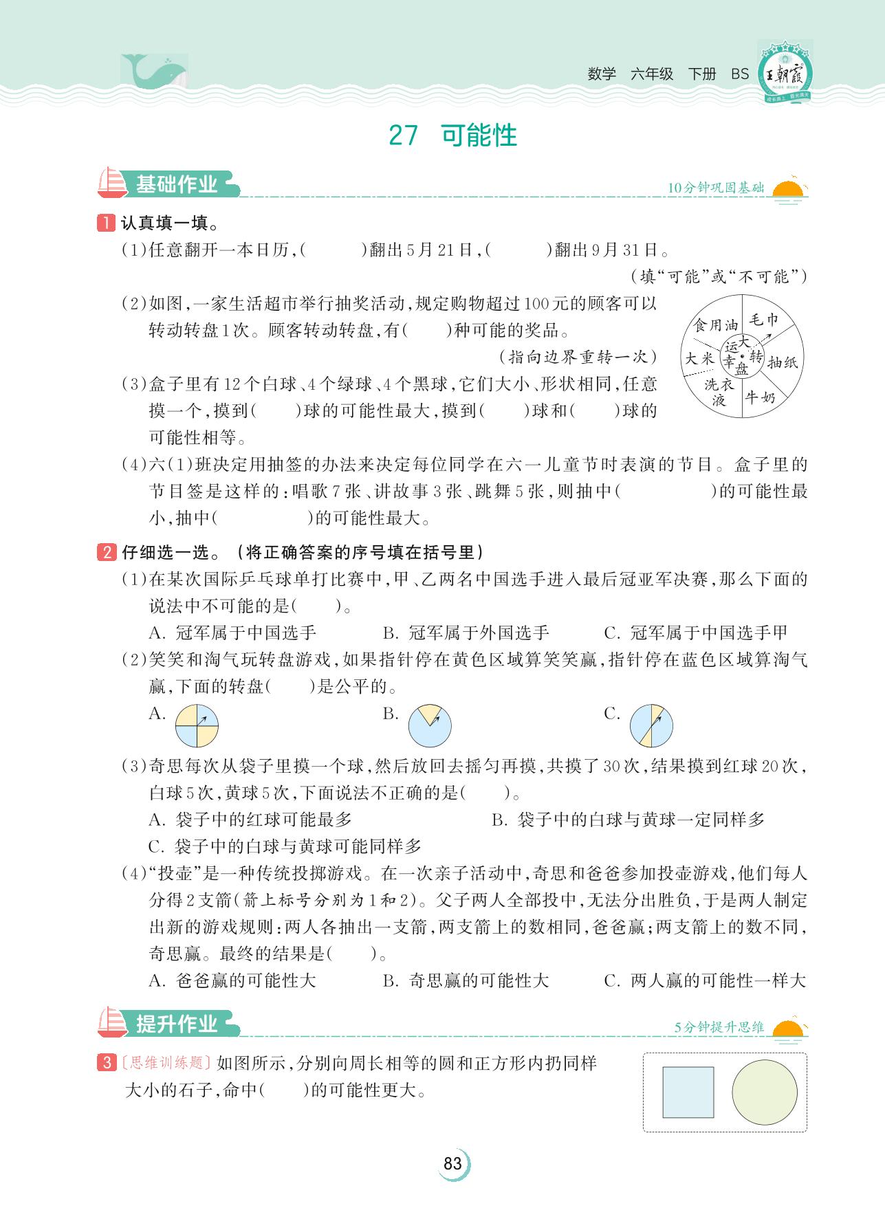 2023下册六年级数学北师版 总复习 统计与概率——27 可能性