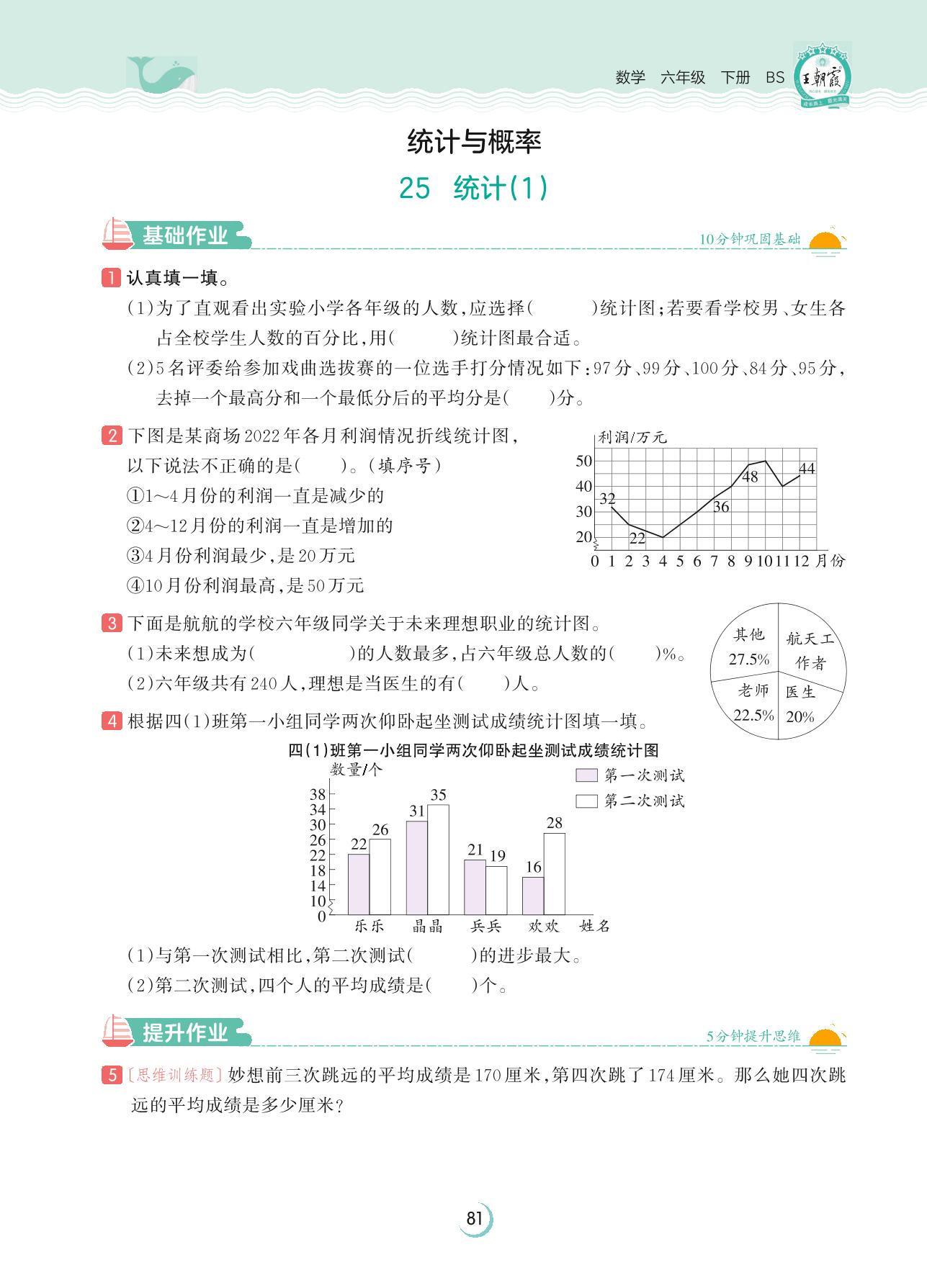 2023下册六年级数学北师版 总复习 统计与概率——25 统计(1)