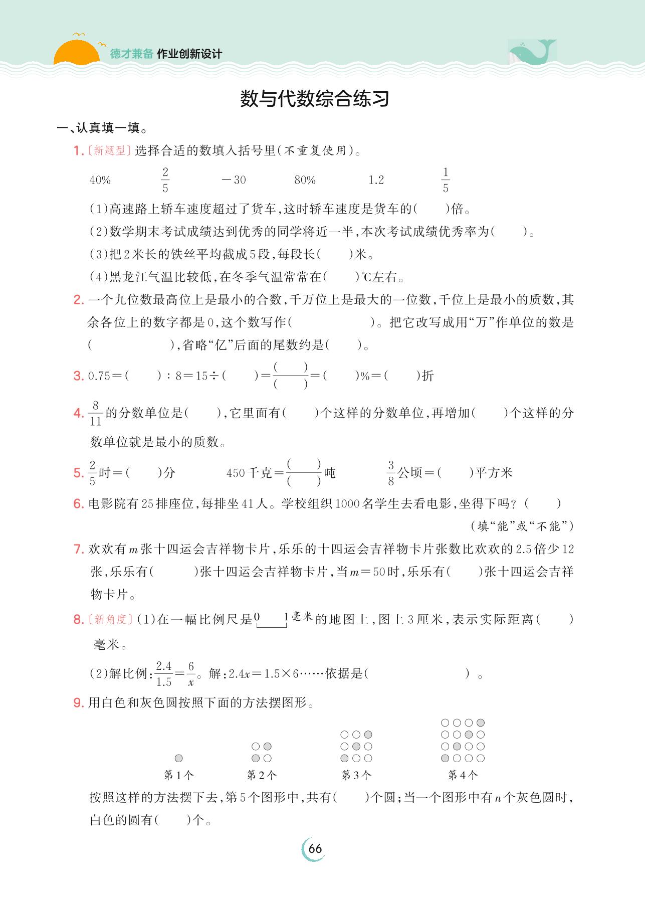 2023下册六年级数学北师版 总复习 数与代数——数与代数综合练习