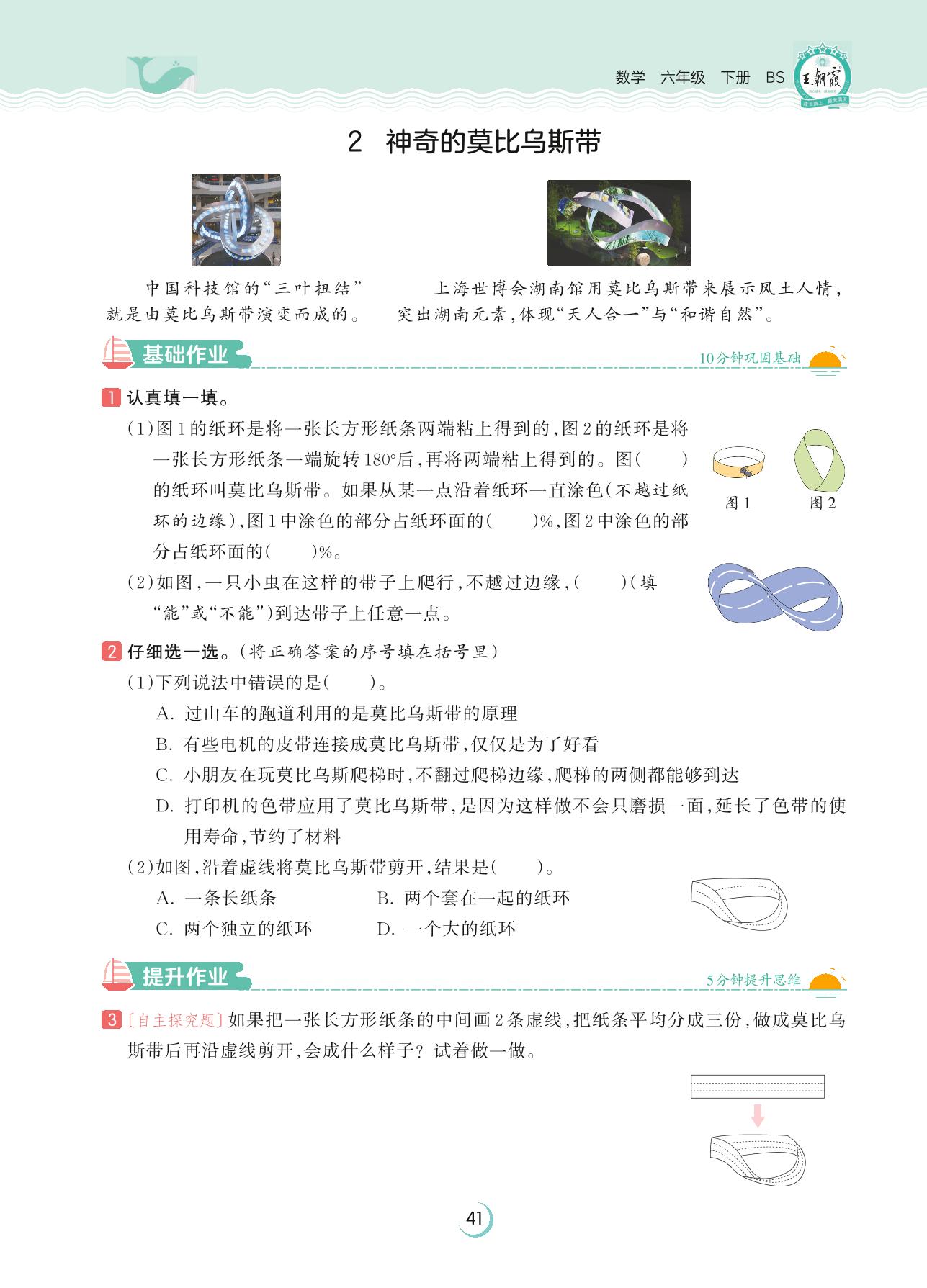 2023下册六年级数学北师版 数学好玩——2 神奇的莫比乌斯带