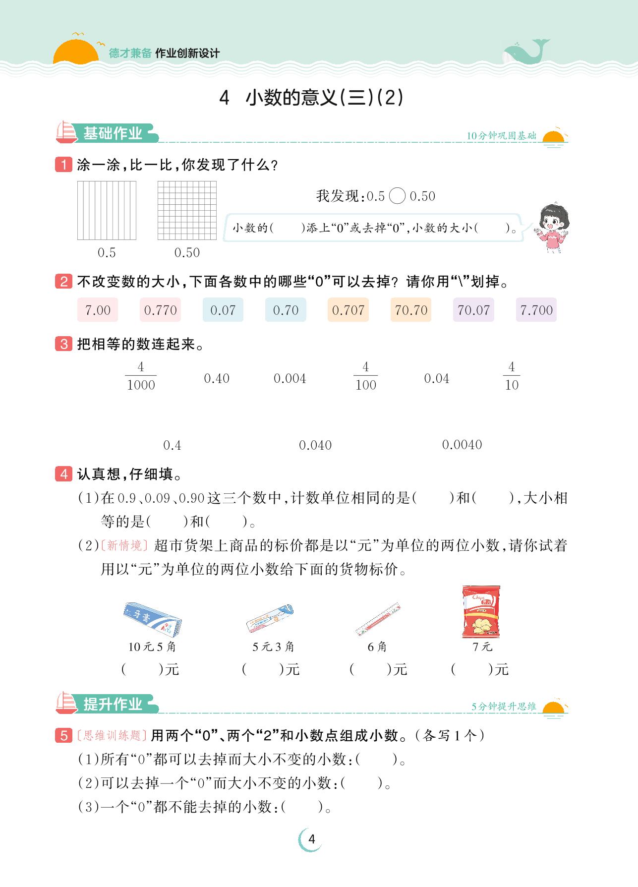 2023下册四年级数学北师版 第一单元 小数的意义和加减法——4 小数的意义(三)(2)