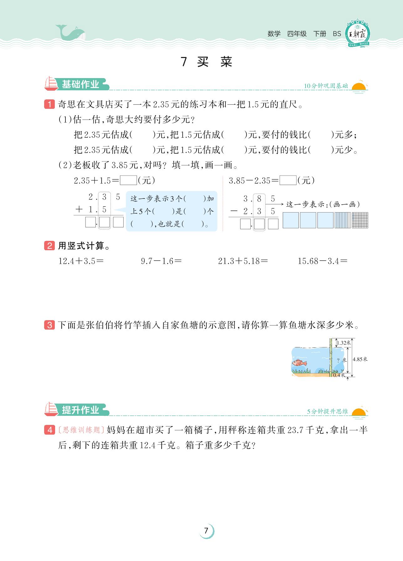 2023下册四年级数学北师版 第一单元 小数的意义和加减法——7 买菜