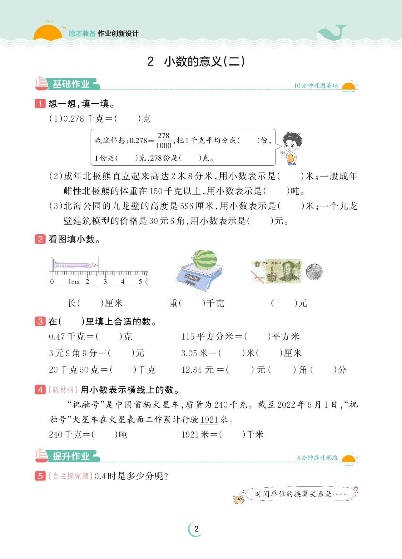 2023下册四年级数学北师版 第一单元 小数的意义和加减法——2 小数的意义(二)