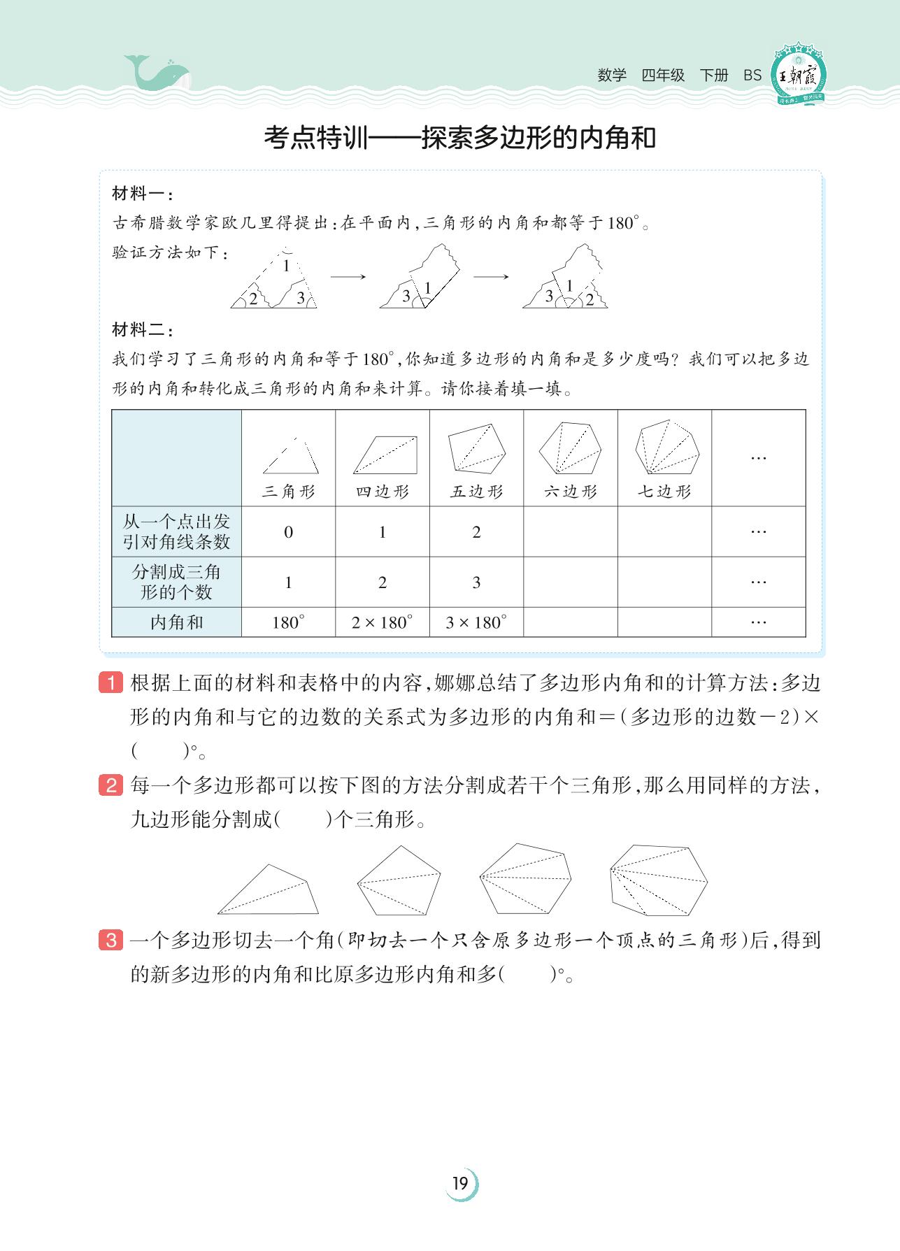2023下册四年级数学北师版 第二单元 认识三角形和四边形——考点特训 探索多边形的内角和