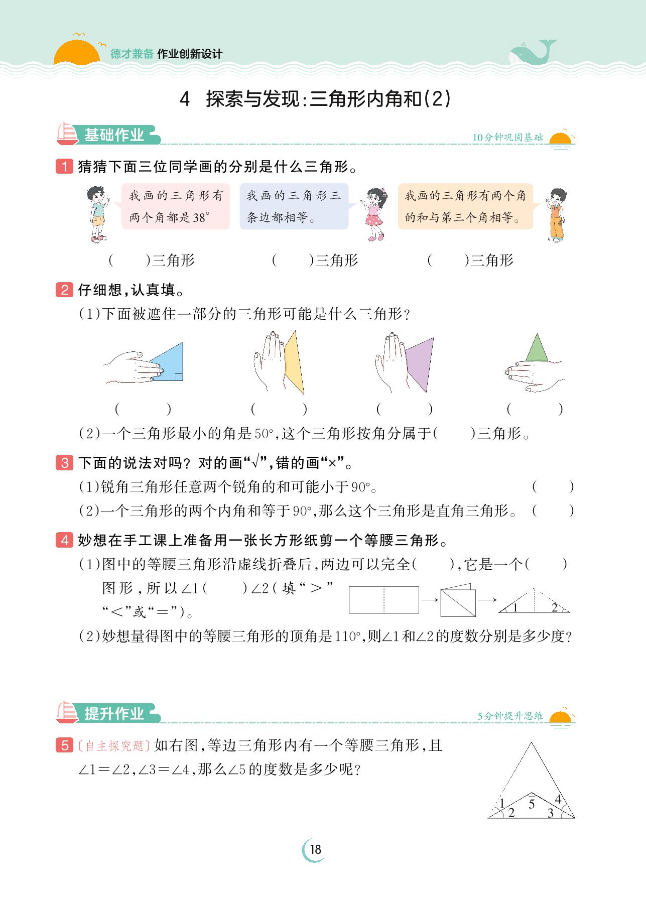2023下册四年级数学北师版 第二单元 认识三角形和四边形——4 探索与发现:三角形内角和(2)