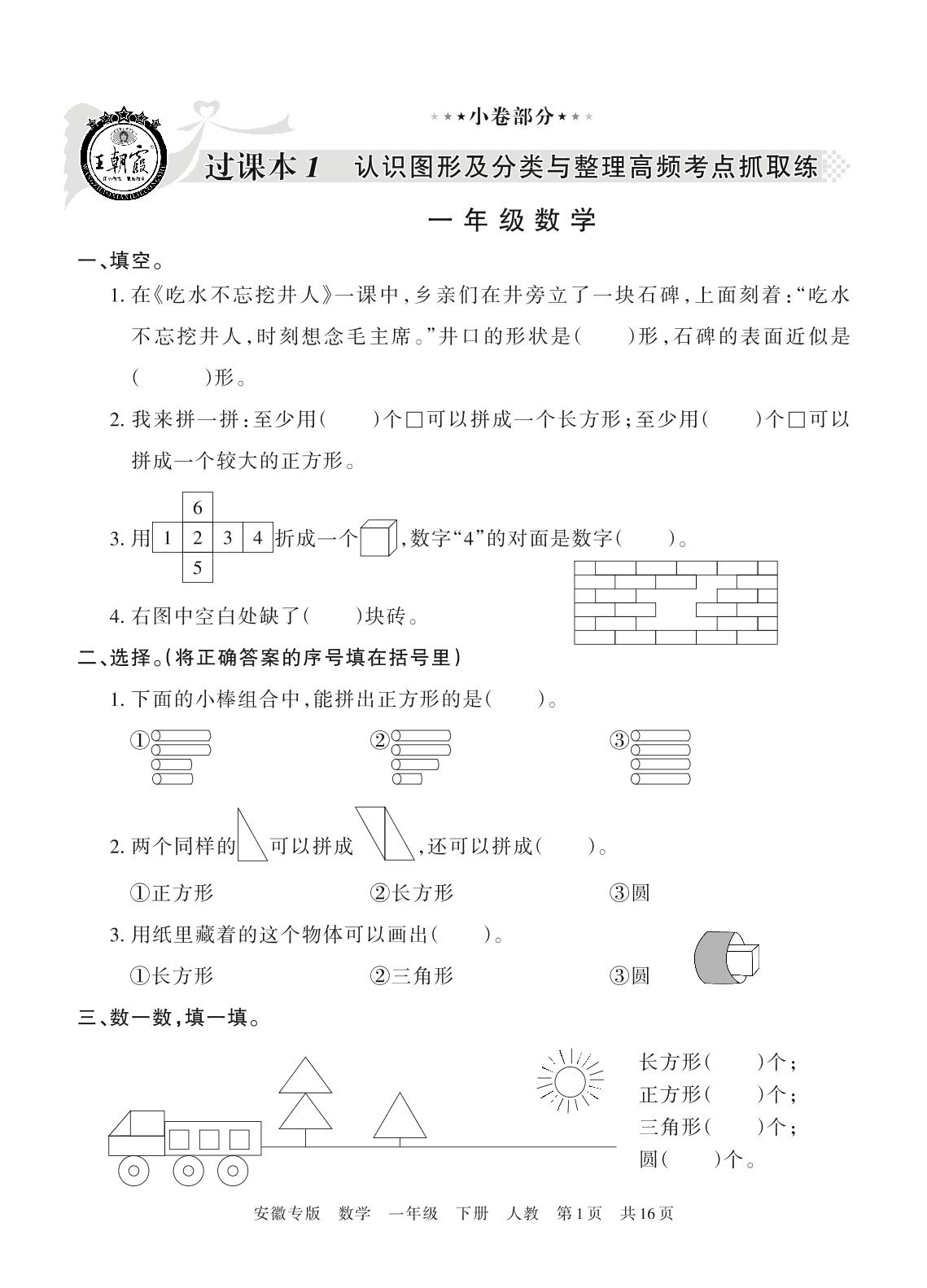 王朝霞期末小卷一年级下册数学(人教版)_R210802205858【0】