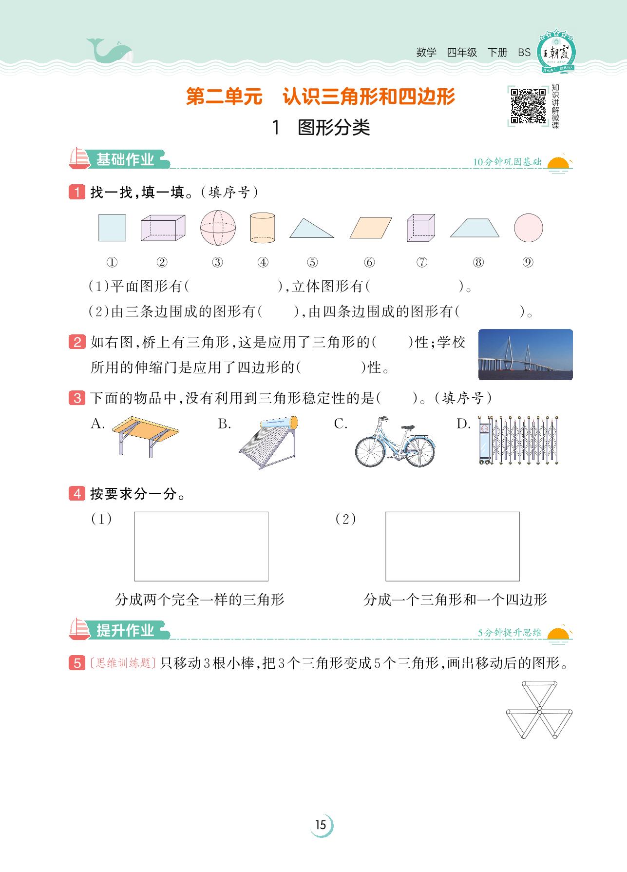 2023下册四年级数学北师版 第二单元 认识三角形和四边形——1 图形分类