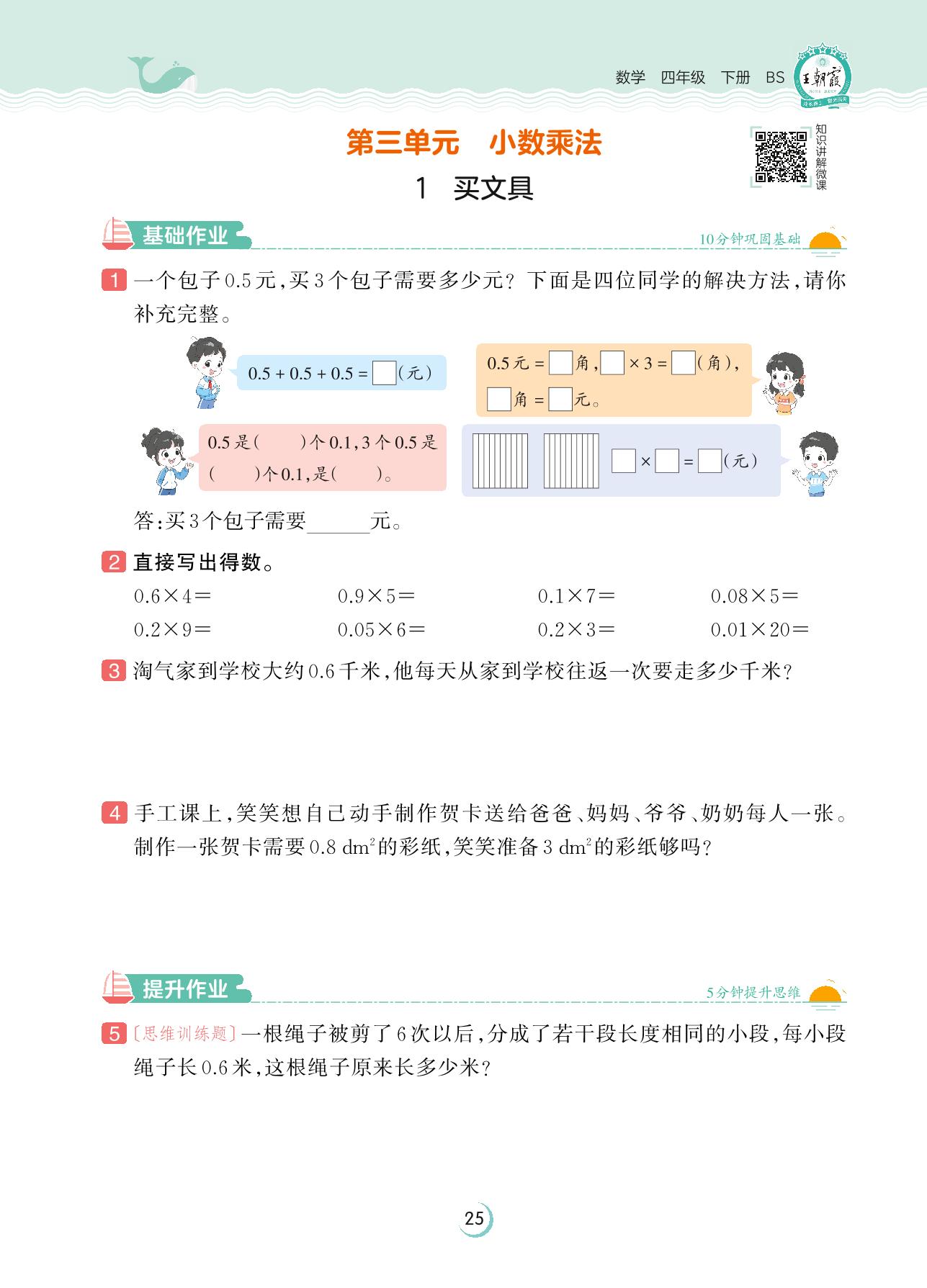 2023下册四年级数学北师版 第三单元 小数乘法——1 买文具
