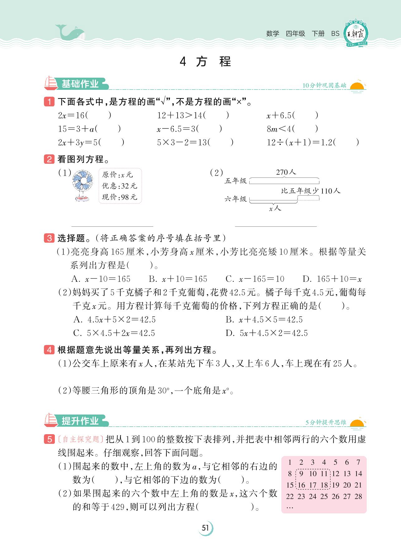 2023下册四年级数学北师版 第五单元 认识方程——4 方程