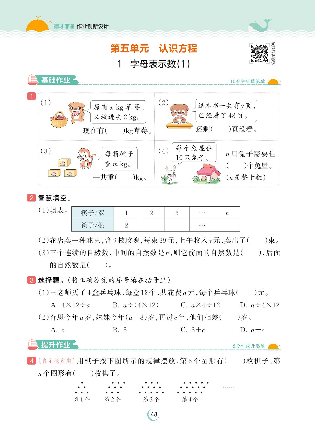 2023下册四年级数学北师版 第五单元 认识方程——1 字母表示数(1)