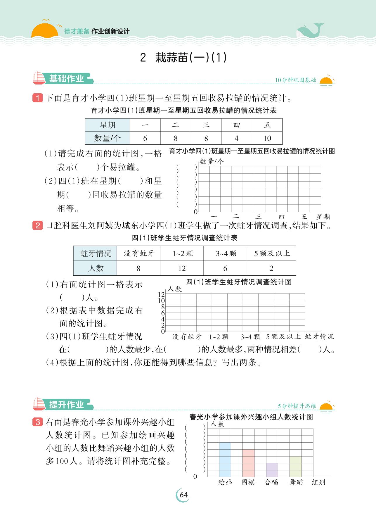 2023下册四年级数学北师版 第六单元 数据的表示和分析——2 栽蒜苗(一)(1)