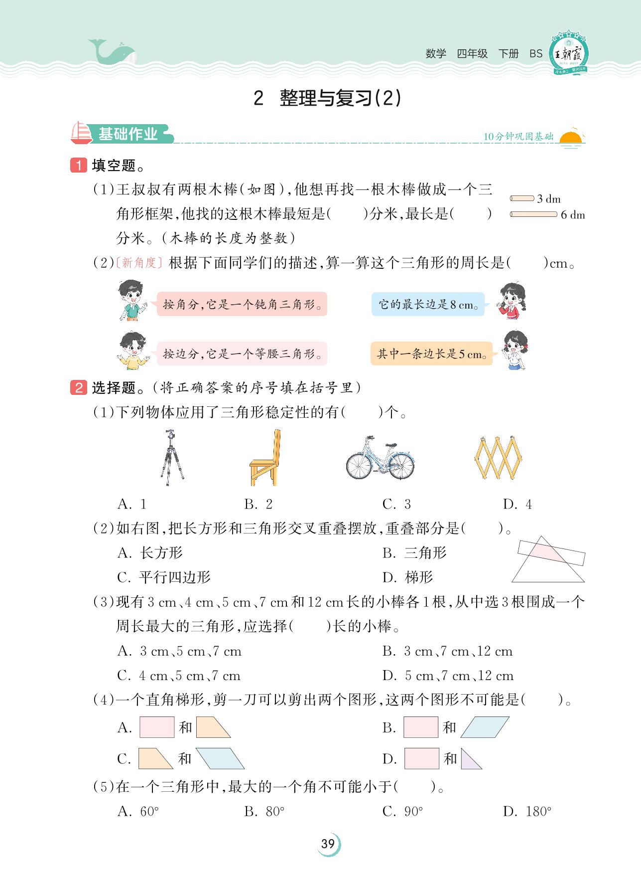 2023下册四年级数学北师版 整理与复习——2 整理与复习(2)