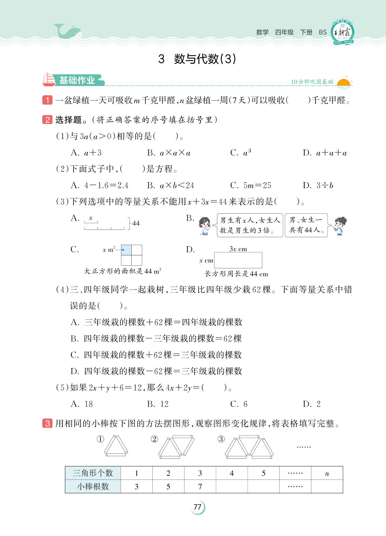 2023下册四年级数学北师版 总复习——3 数与代数(3)