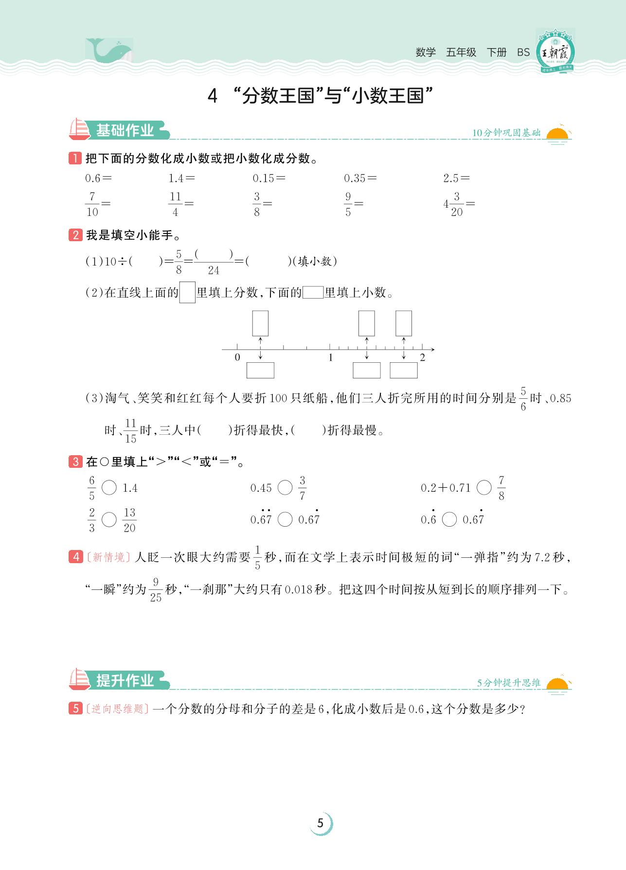 2023下册五年级数学北师版 第一单元 分数加减法——4 “分数王国”与“小数王国”