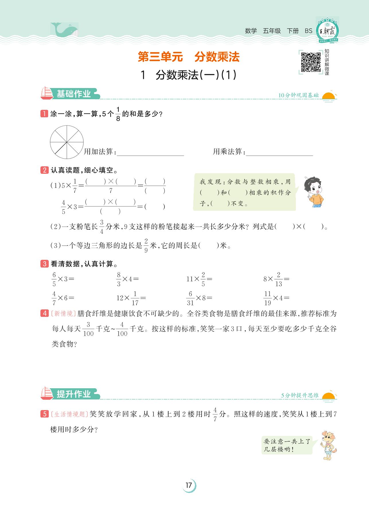 2023下册五年级数学北师版 第三单元 分数乘法——1 分数乘法(一)(1)