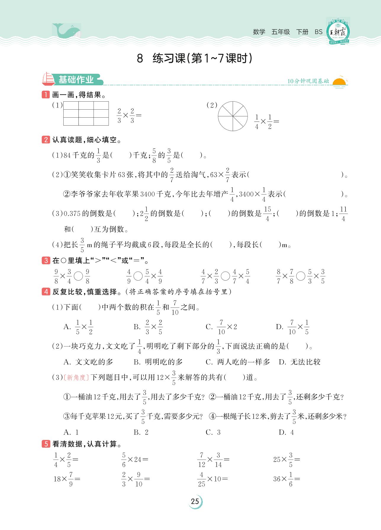 2023下册五年级数学北师版 第三单元 分数乘法——8 练习课(第1~7课时)