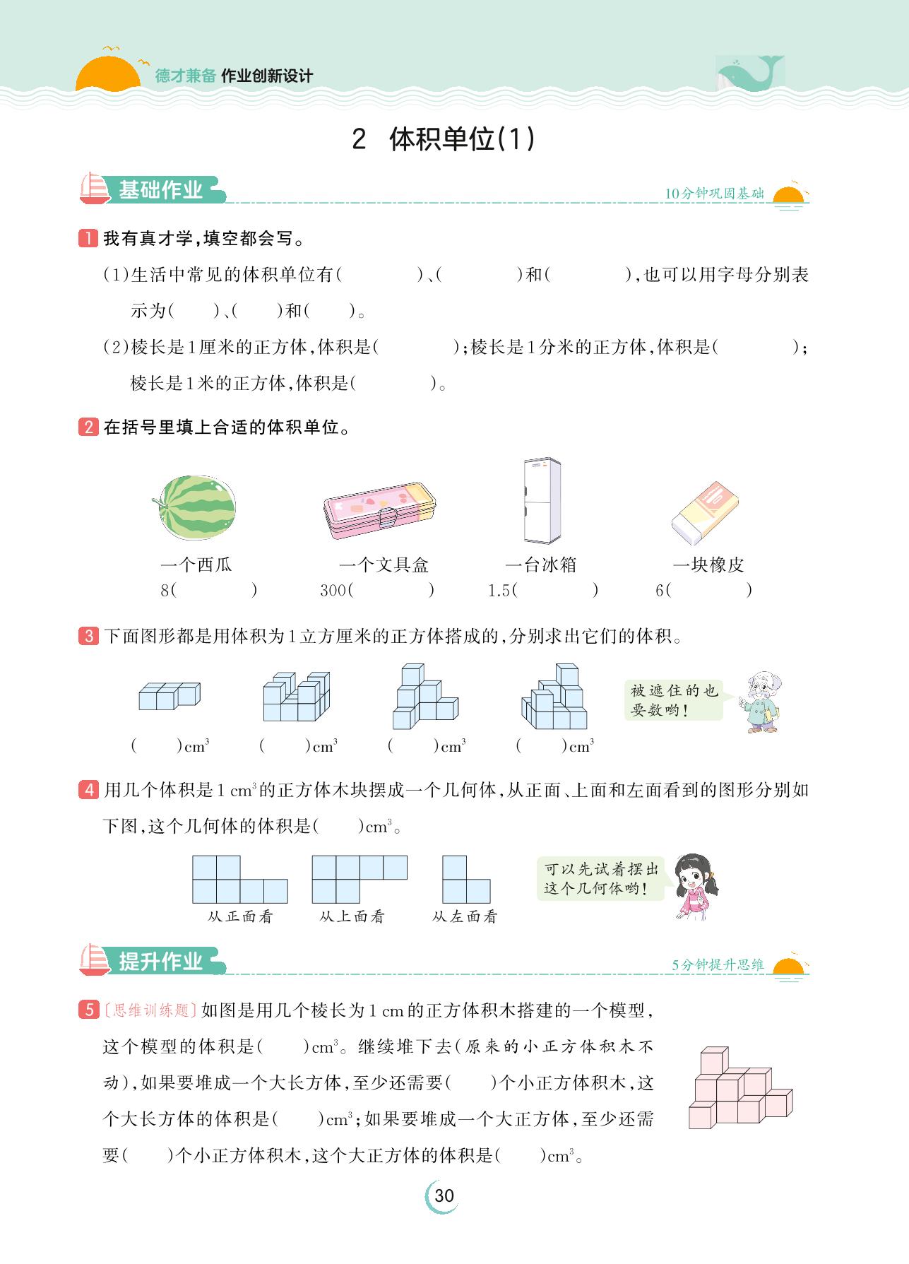 2023下册五年级数学北师版 第四单元 长方体(二)——2 体积单位(1)