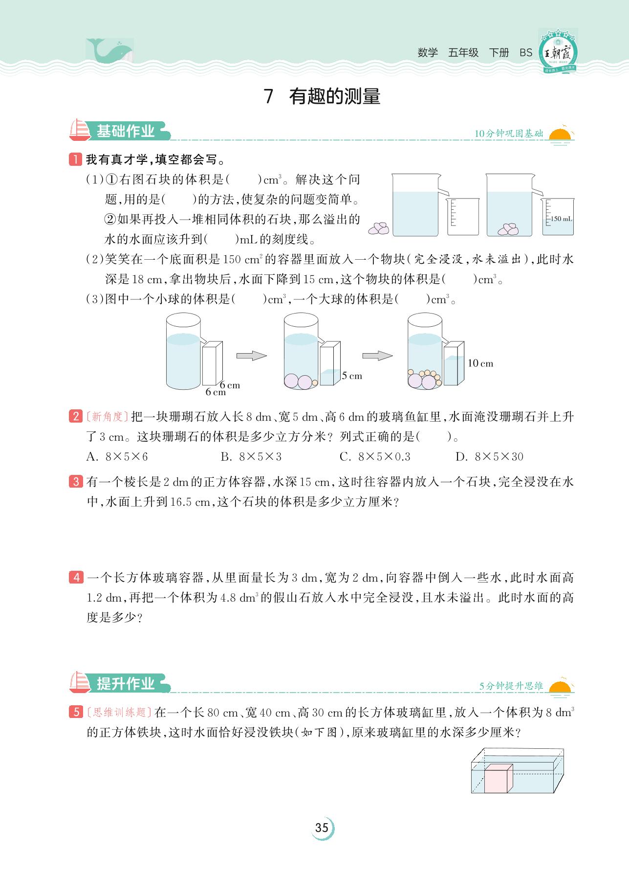 2023下册五年级数学北师版 第四单元 长方体(二)——7 有趣的测量