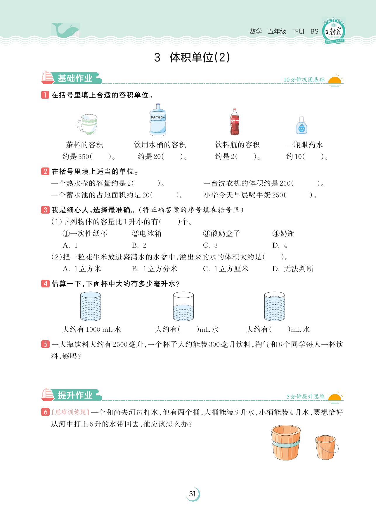 2023下册五年级数学北师版 第四单元 长方体(二)——3 体积单位(2)