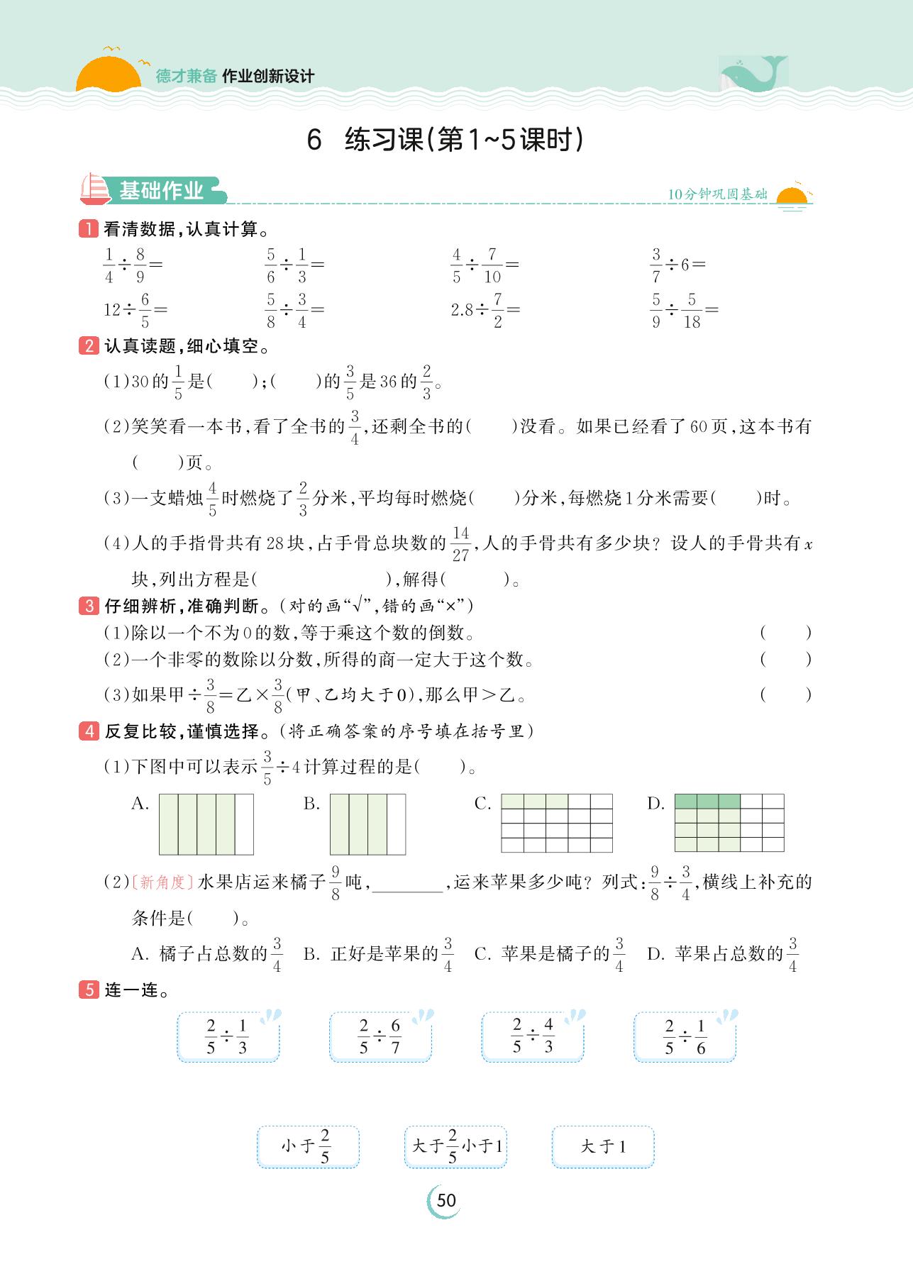 2023下册五年级数学北师版 第五单元 分数除法——6 练习课(第1~5课时)