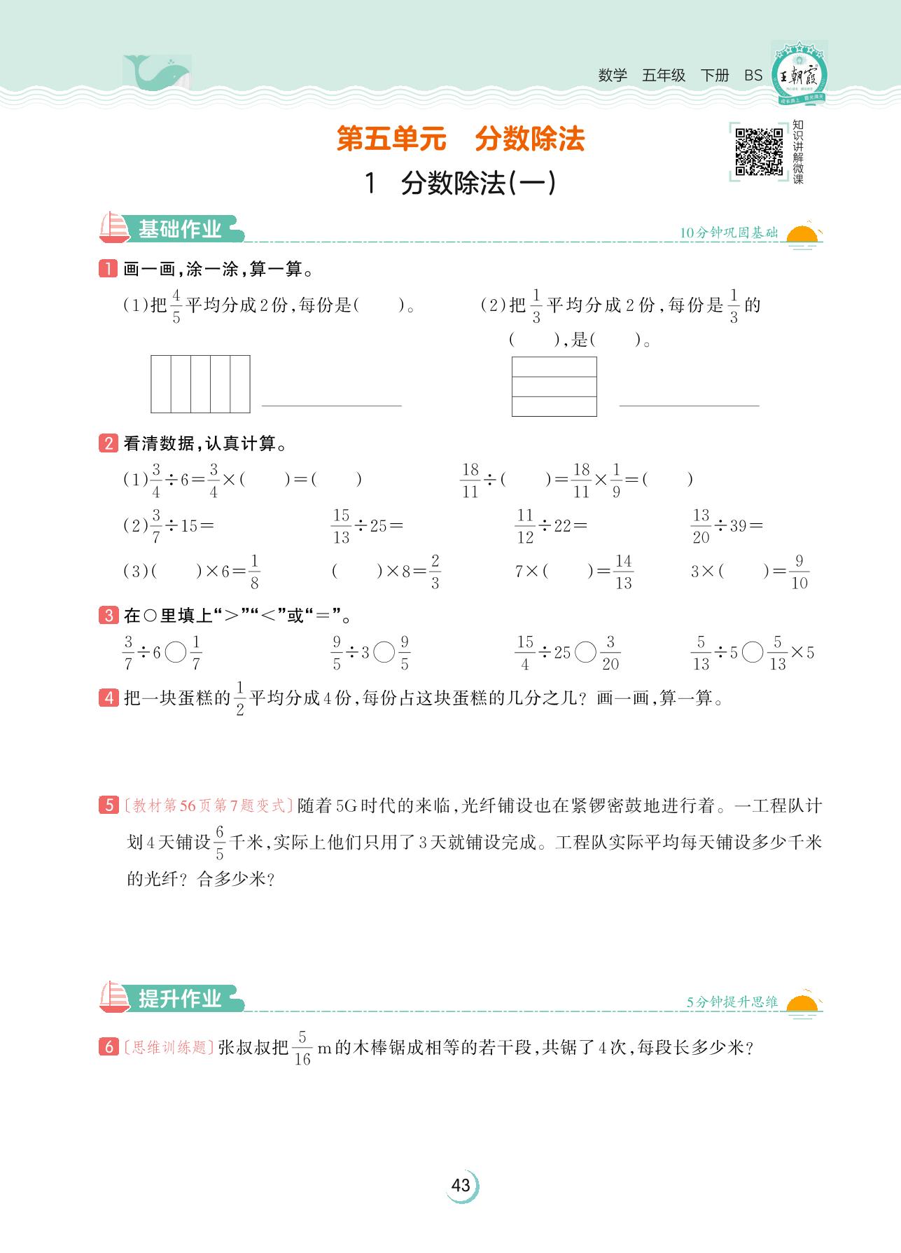 2023下册五年级数学北师版 第五单元 分数除法——1 分数除法(一)