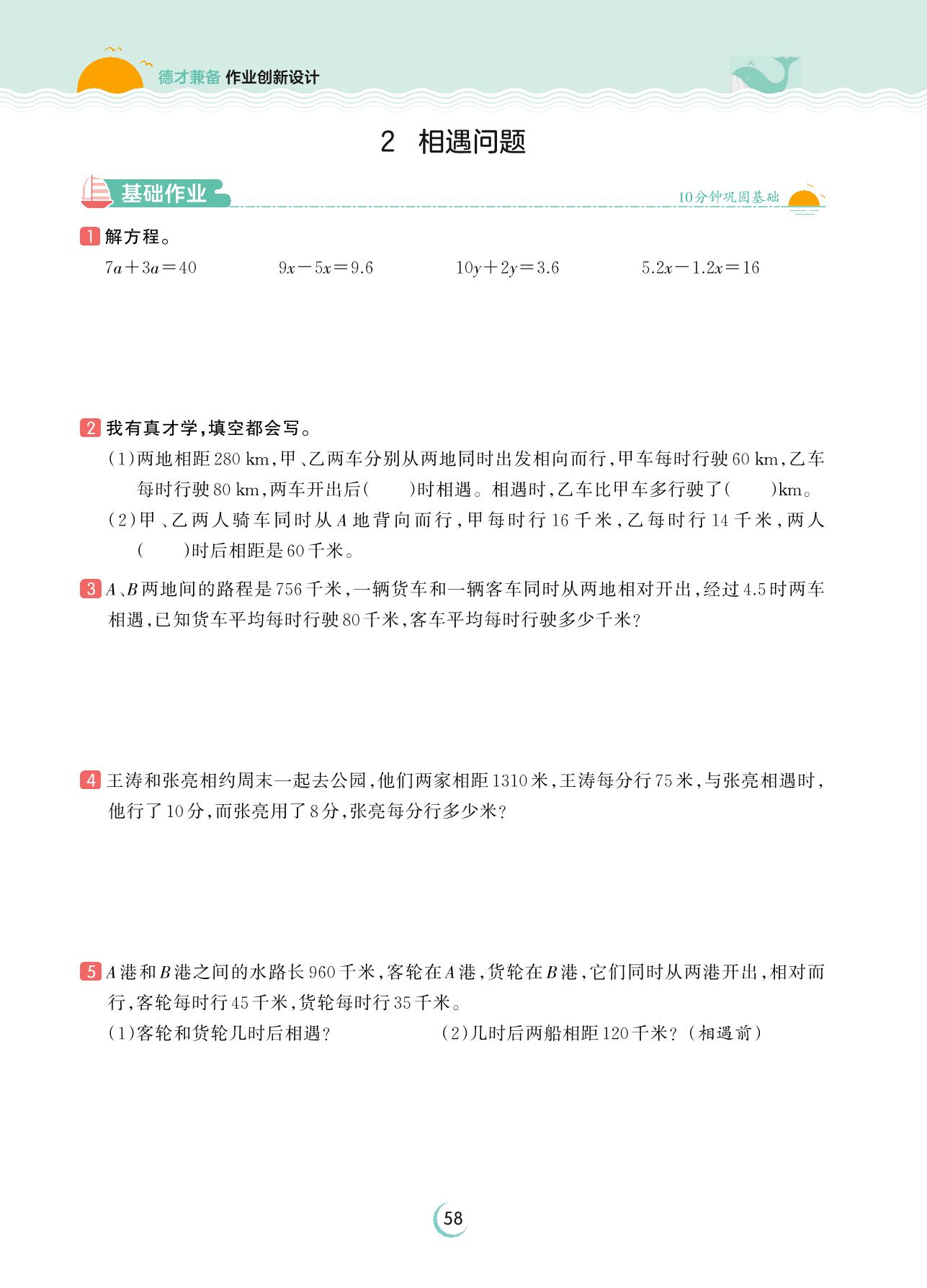 2023下册五年级数学北师版 第七单元 用方程解决问题——2 相遇问题
