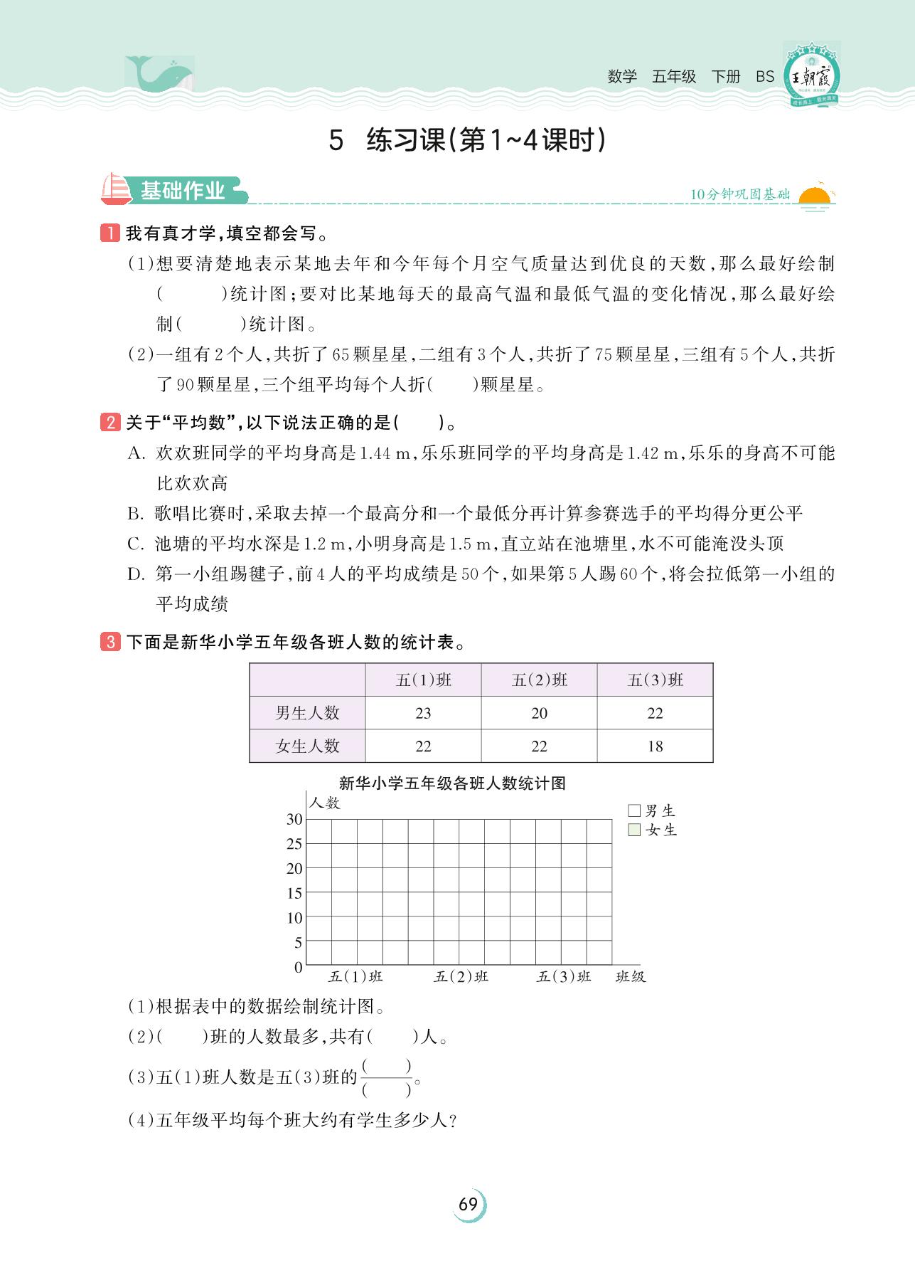 2023下册五年级数学北师版 第八单元 数据的表示和分析——5 练习课(第1~4课时)
