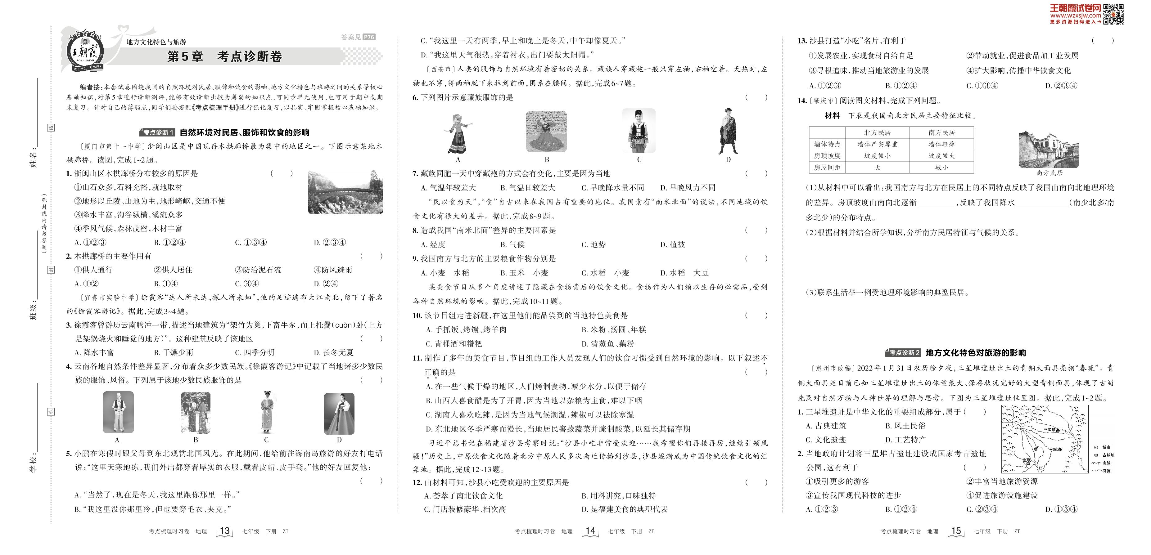 2023下册七年级地理中图版 第5章 考点诊断卷