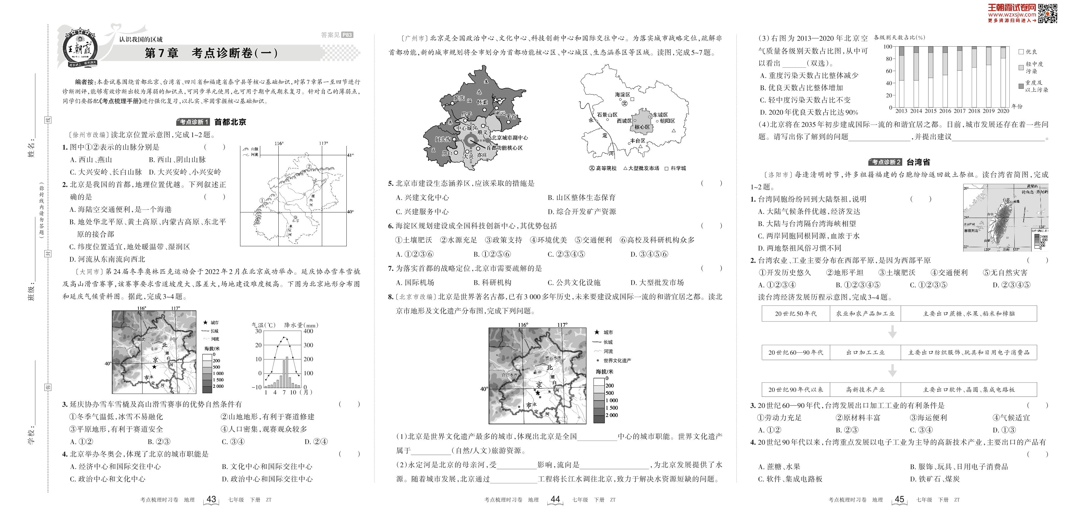 2023下册七年级地理中图版 第7章 考点诊断卷(一)
