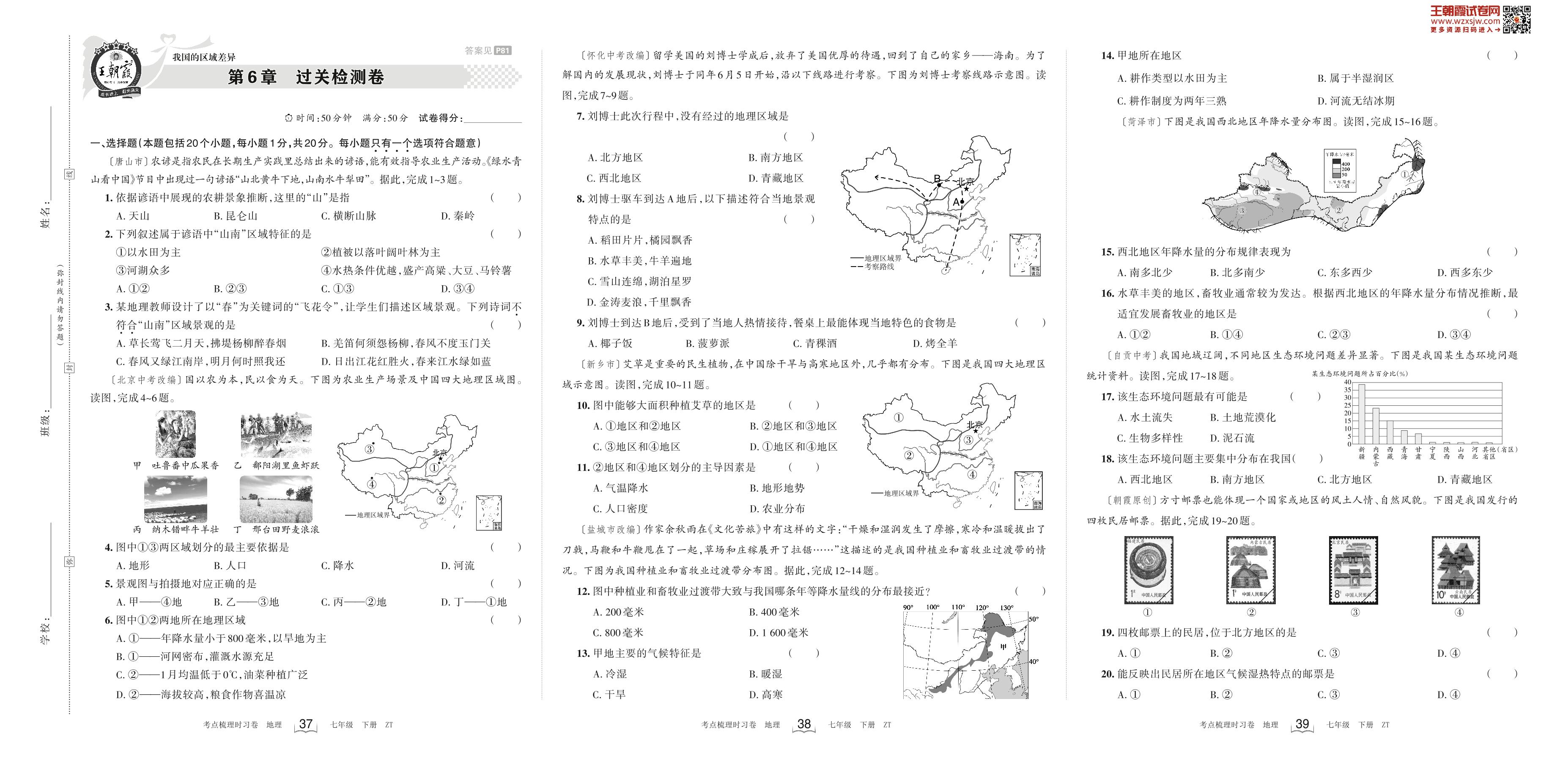 七年级地理中图版下册单元卷