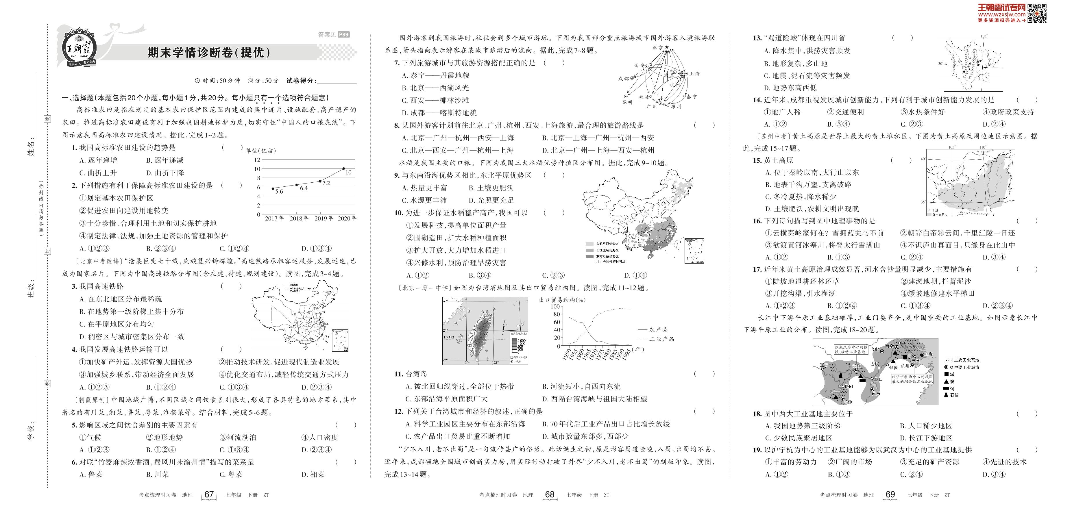 2023下册七年级地理中图版 期末学情诊断卷(提优)