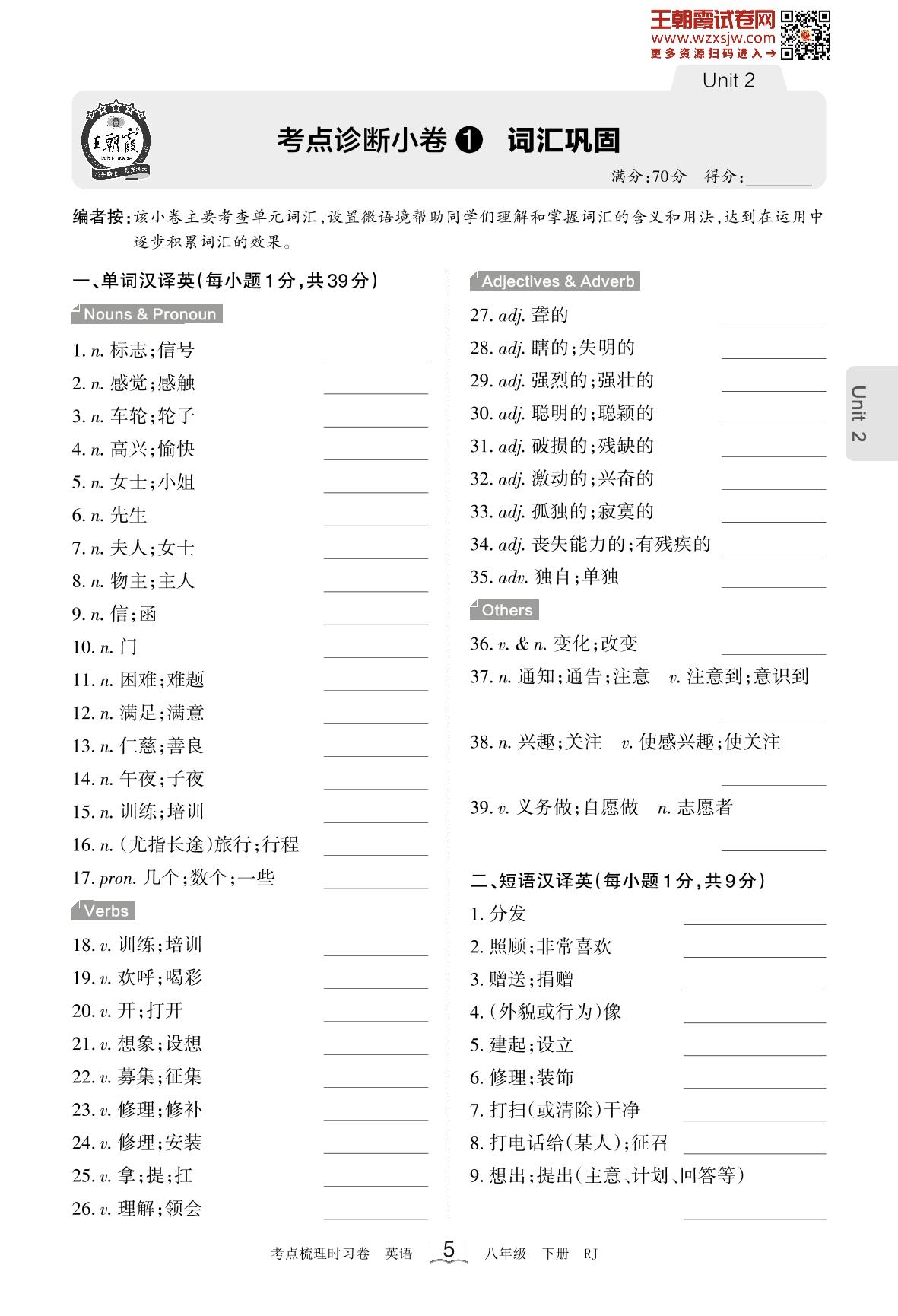 2023下册八年级英语人教版 Unit 2 考点诊断小卷1 词汇巩固