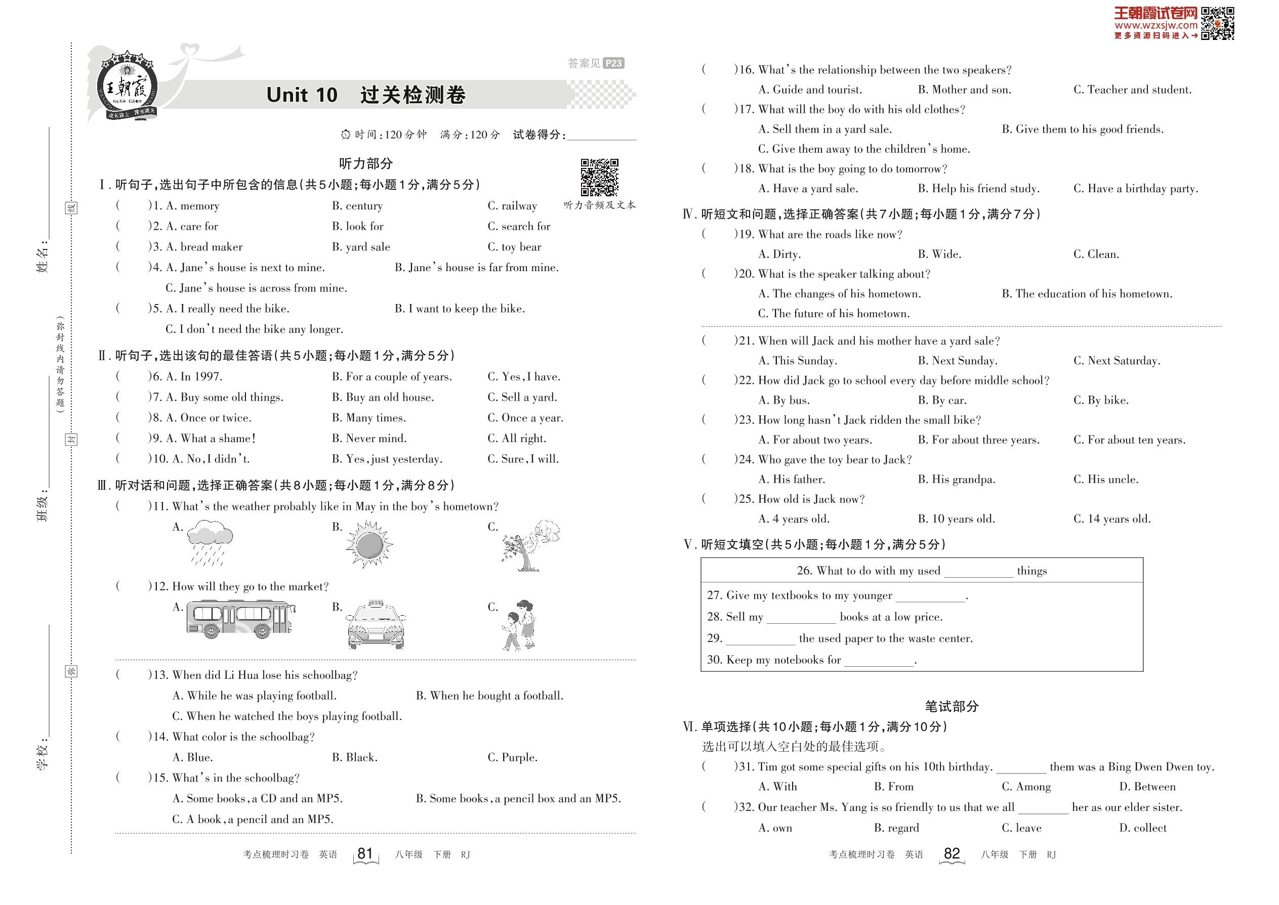 2023下册八年级英语人教版 Unit 10 过关检测卷