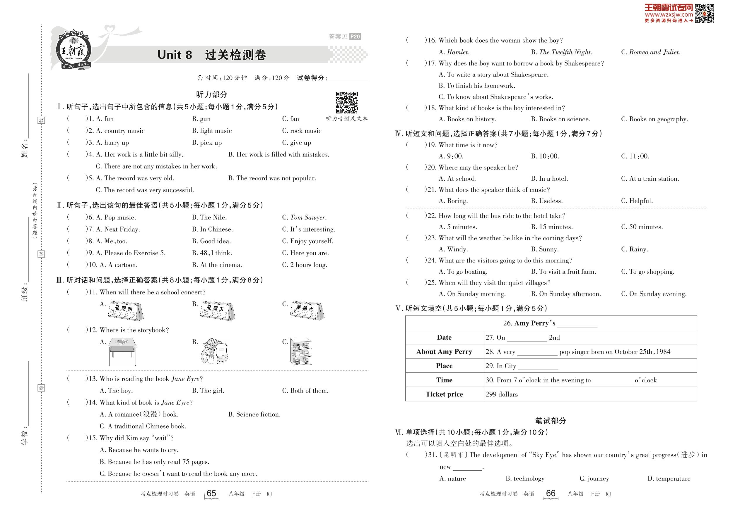 八年级英语人教版下册单元卷