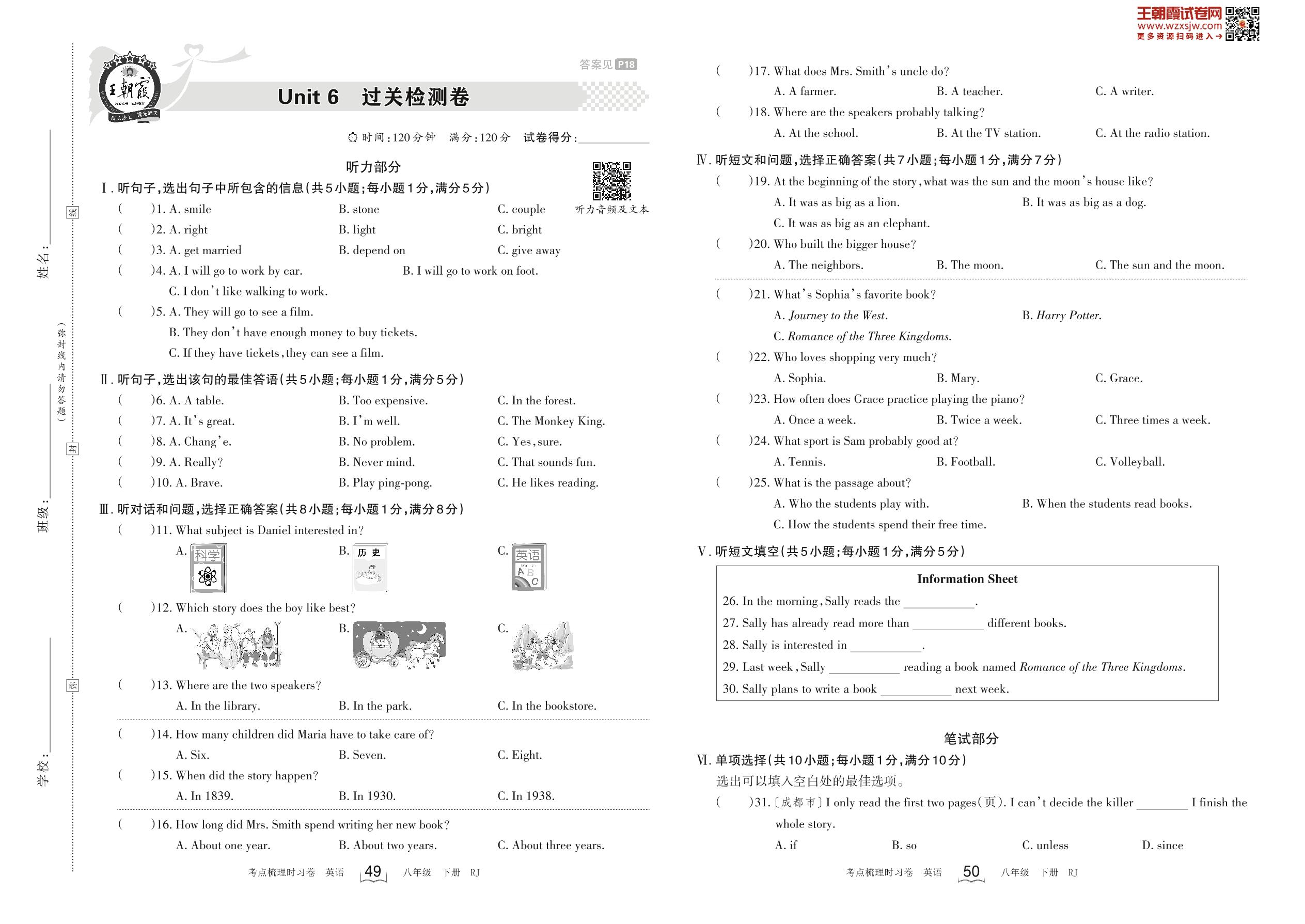 2023下册八年级英语人教版 Unit 6 过关检测卷