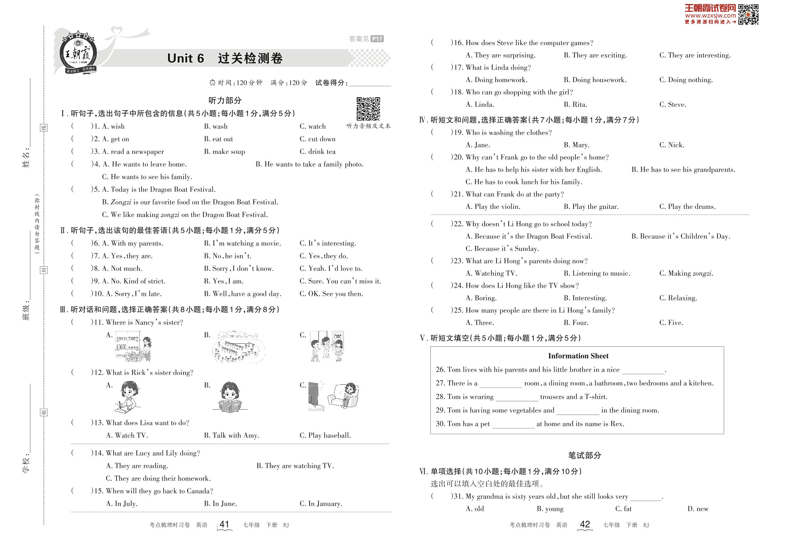2023下册七年级英语人教版 Unit 6 过关检测卷