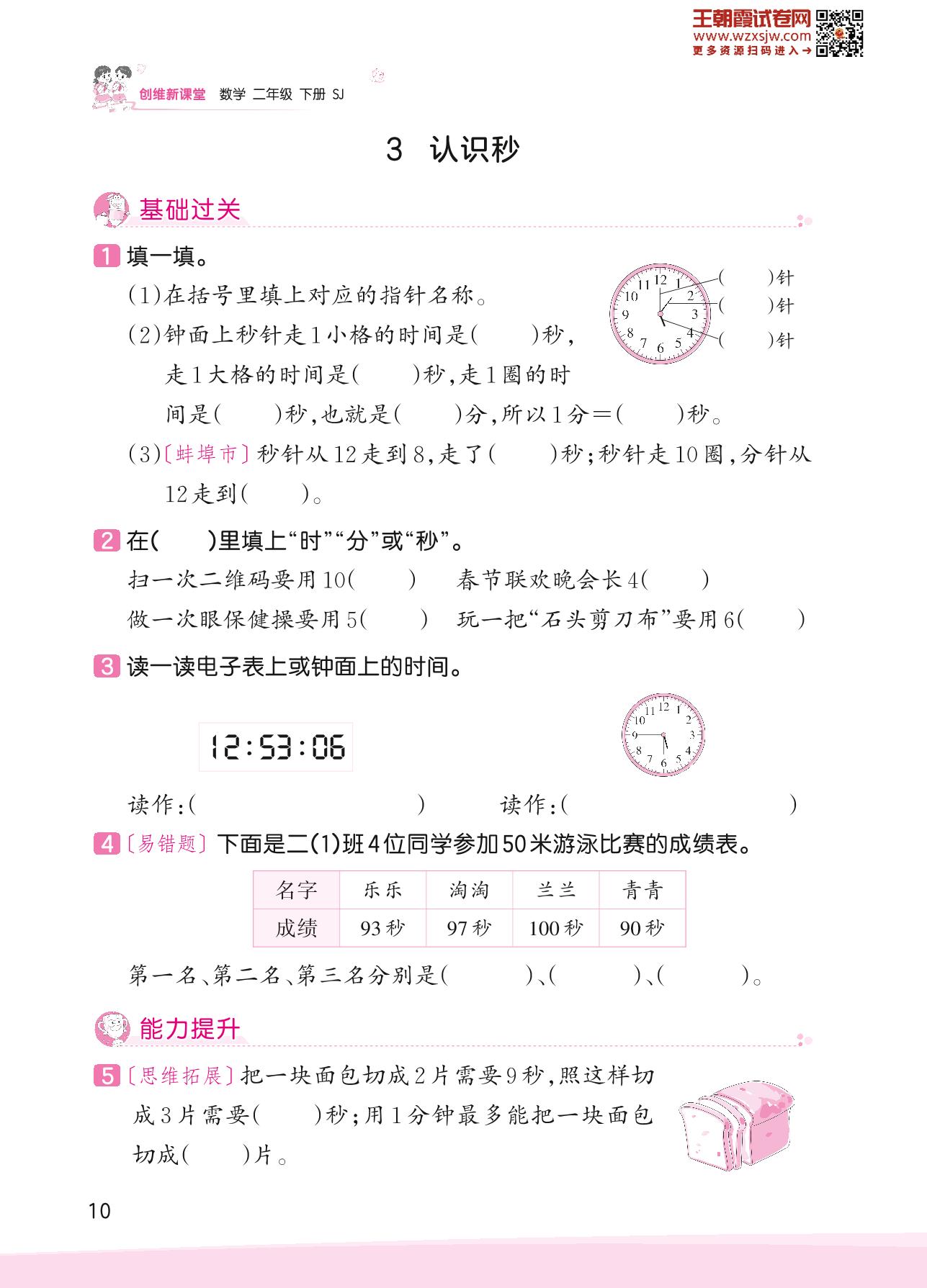 2023下册二年级数学苏教版 二 时、分、秒——3 认识秒