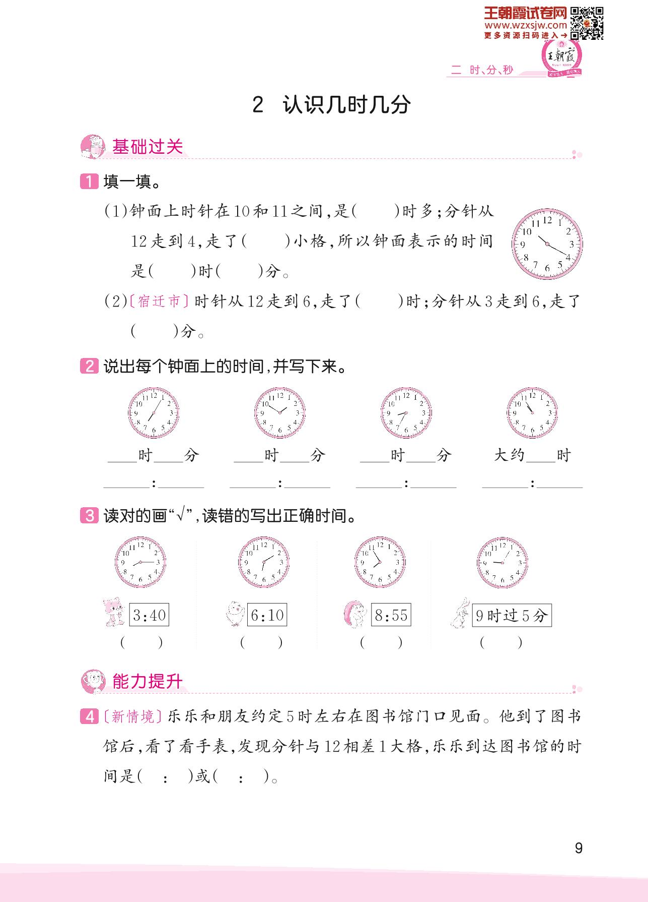 2023下册二年级数学苏教版 二 时、分、秒——2 认识几时几分