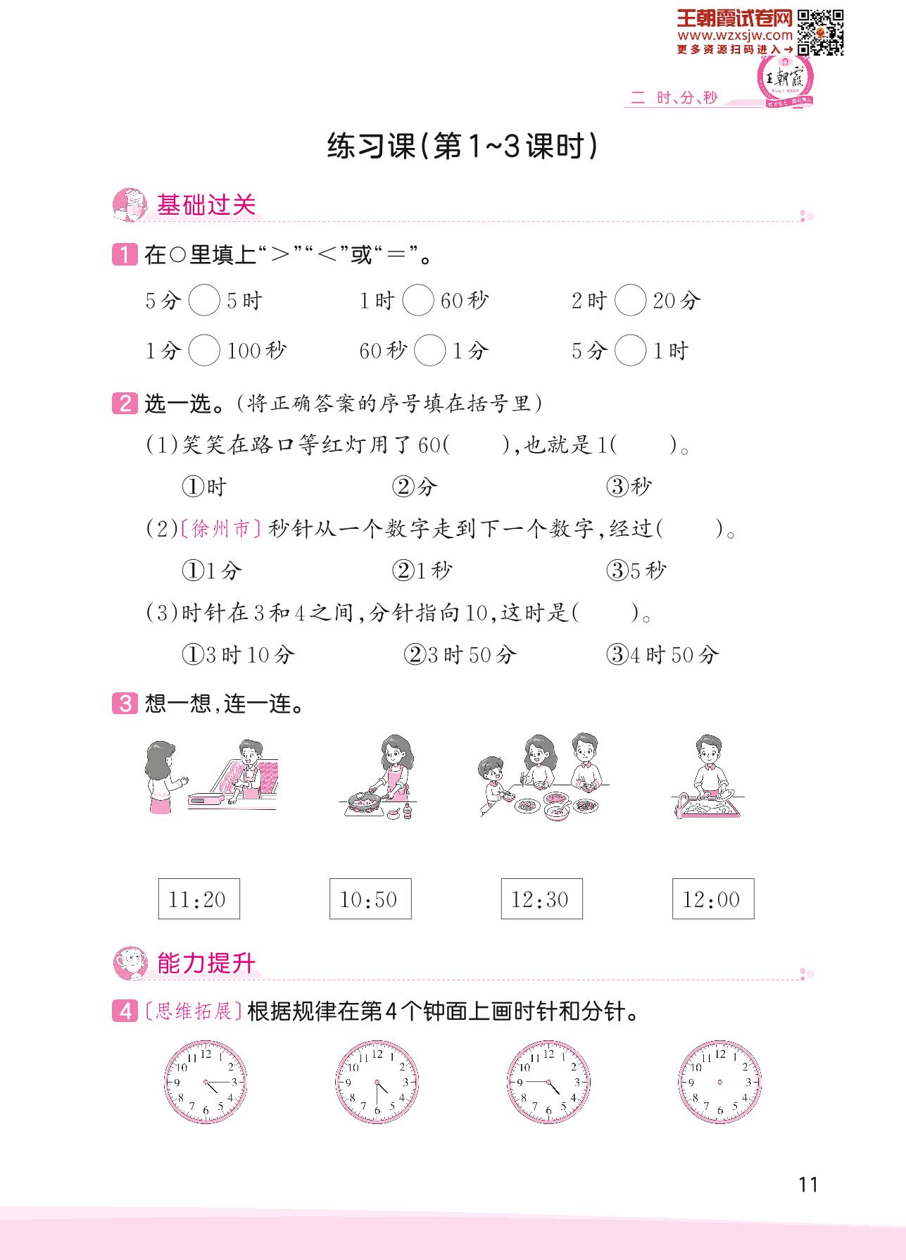 2023下册二年级数学苏教版 二 时、分、秒——练习课(第1~3课时)