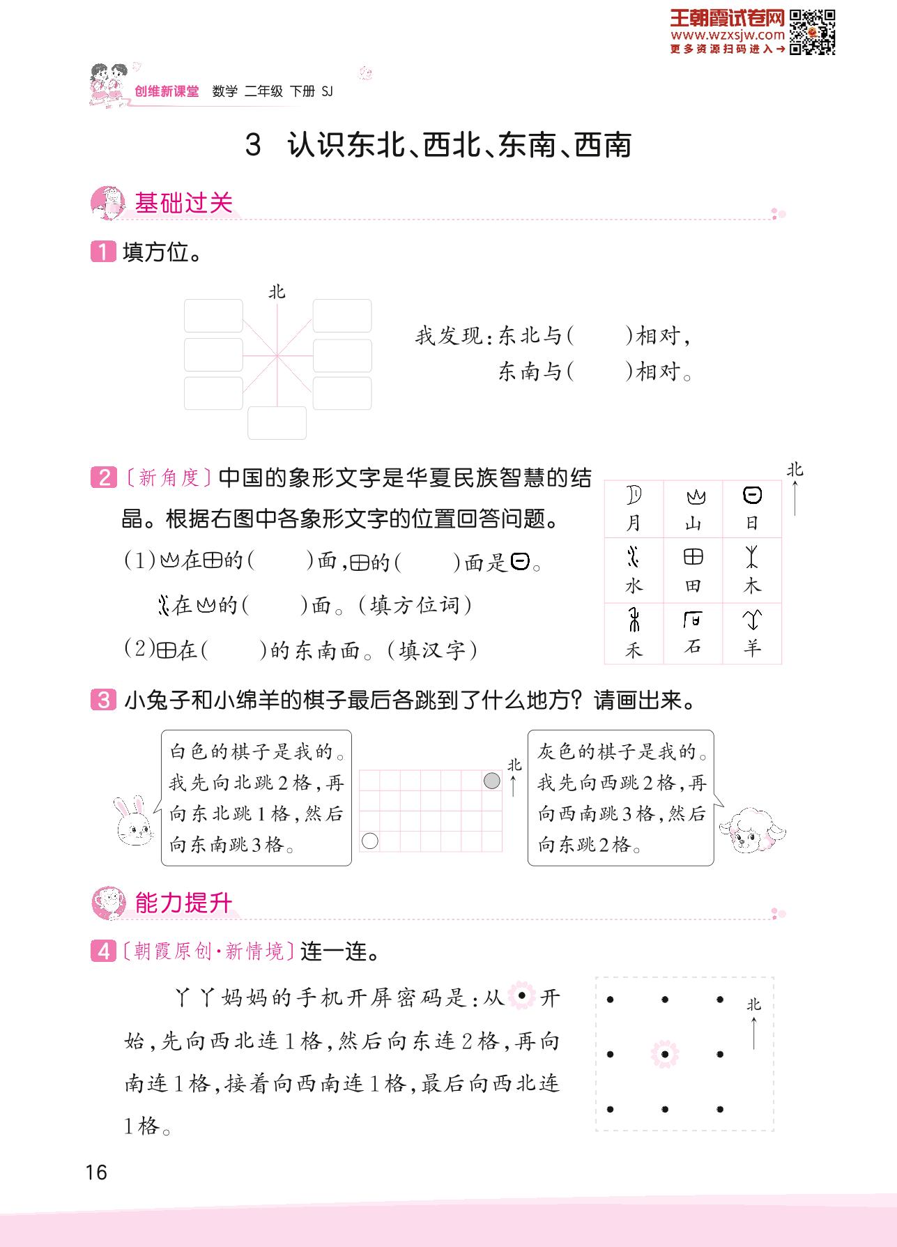 2023下册二年级数学苏教版 三 认识方向——3 认识东北、西北、东南、西南