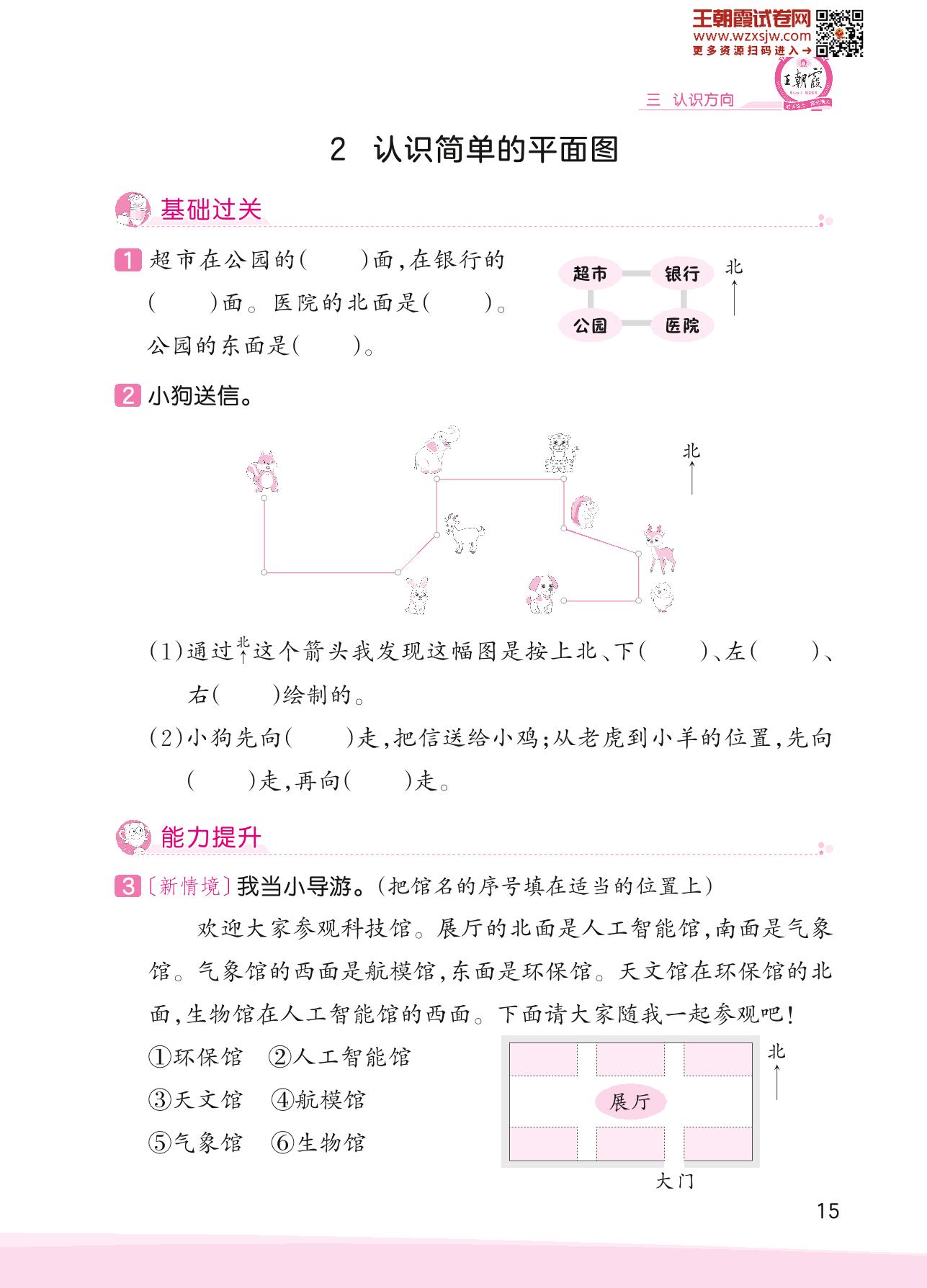 2023下册二年级数学苏教版 三 认识方向——2 认识简单的平面图