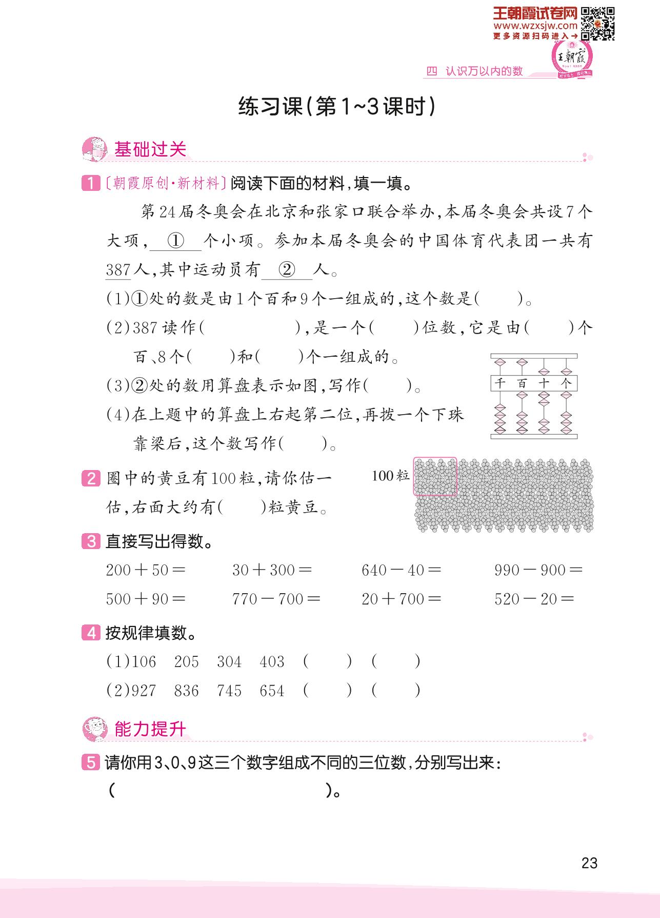 2023下册二年级数学苏教版 四 认识万以内的数——练习课(第1~3课时)