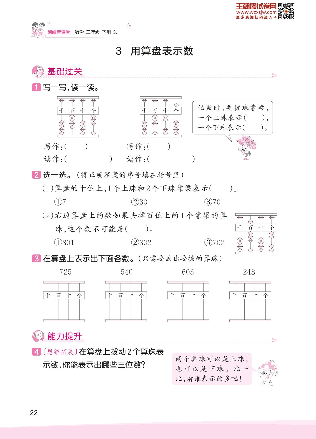 2023下册二年级数学苏教版 四 认识万以内的数——3 用算盘表示数