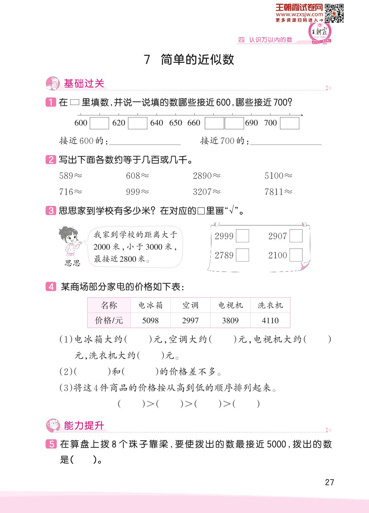 2023下册二年级数学苏教版 四 认识万以内的数——7 简单的近似数