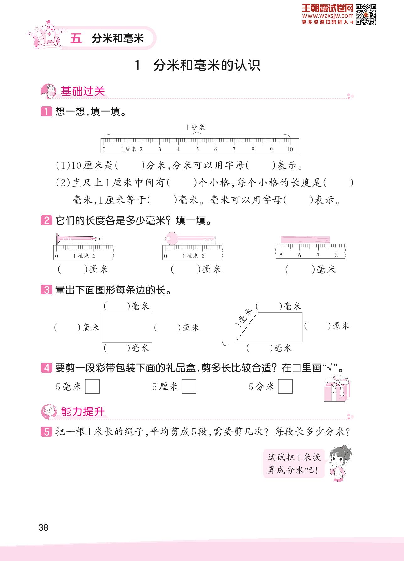 2023下册二年级数学苏教版 五 分米和毫米——1 分米和毫米的认识
