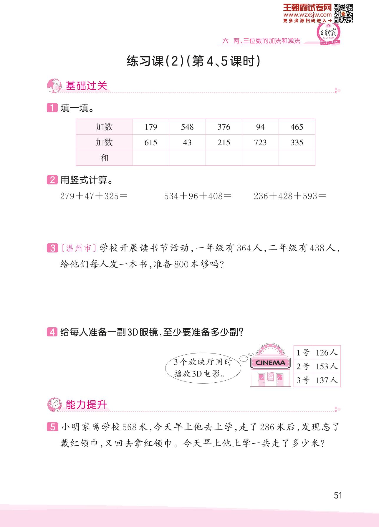 2023下册二年级数学苏教版 六 两、三位数的加法和减法——练习课(2)(第4、5课时)