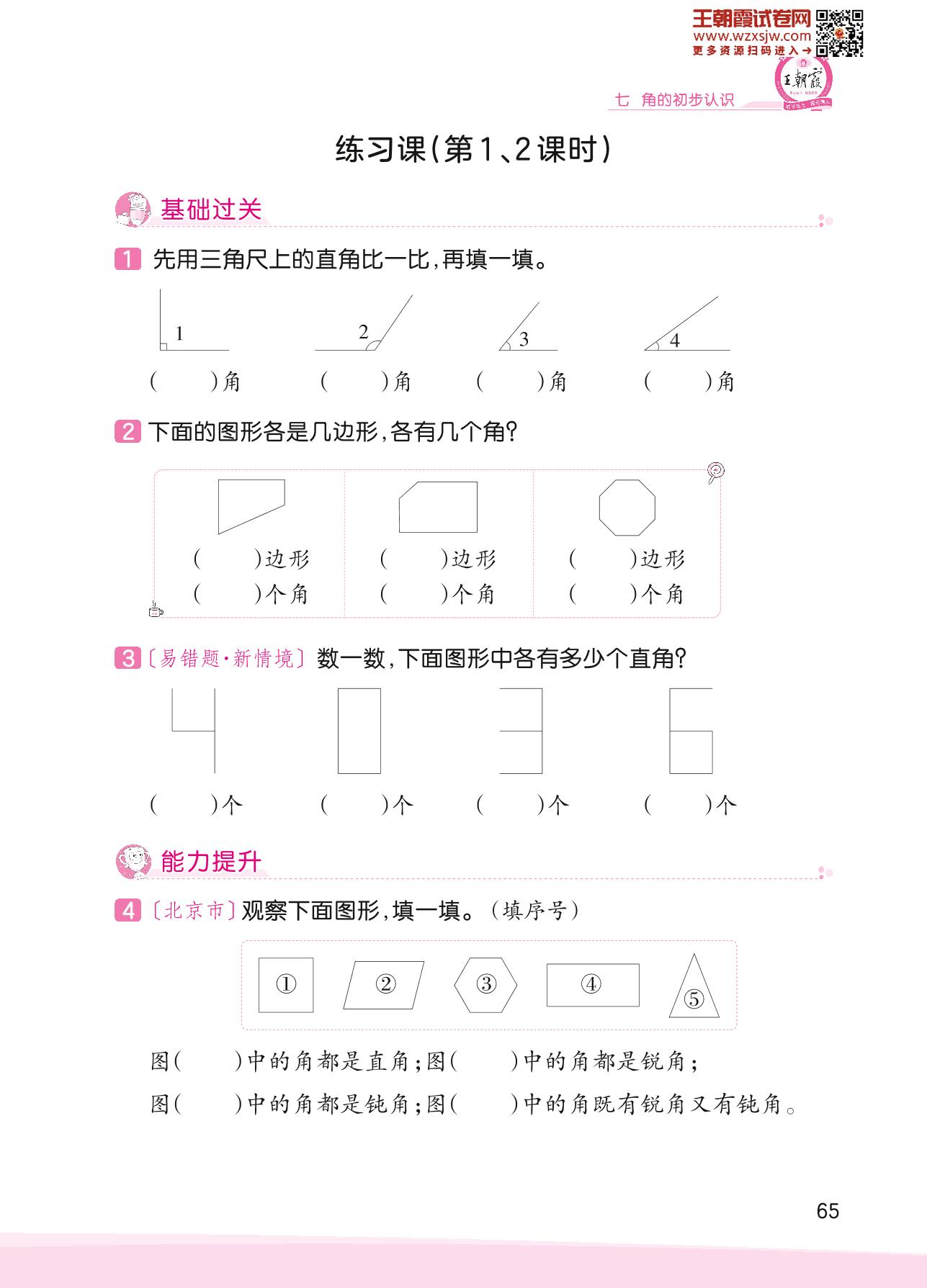 2023下册二年级数学苏教版 七 角的初步认识——练习课(第1、2课时)