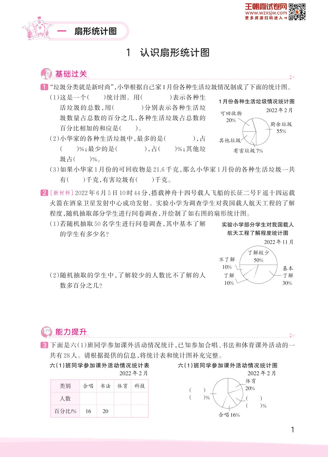 2023下册六年级数学苏教版 一 扇形统计图——1 认识扇形统计图