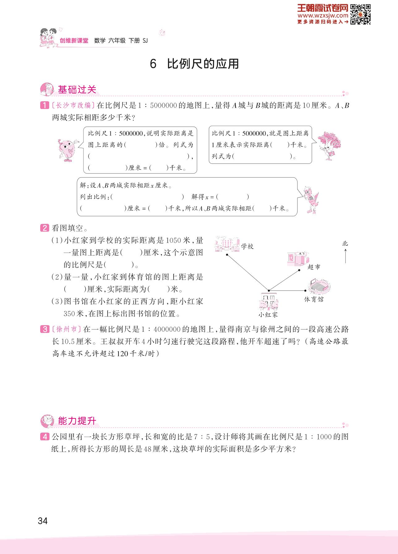 2023下册六年级数学苏教版 四 比例——6 比例尺的应用